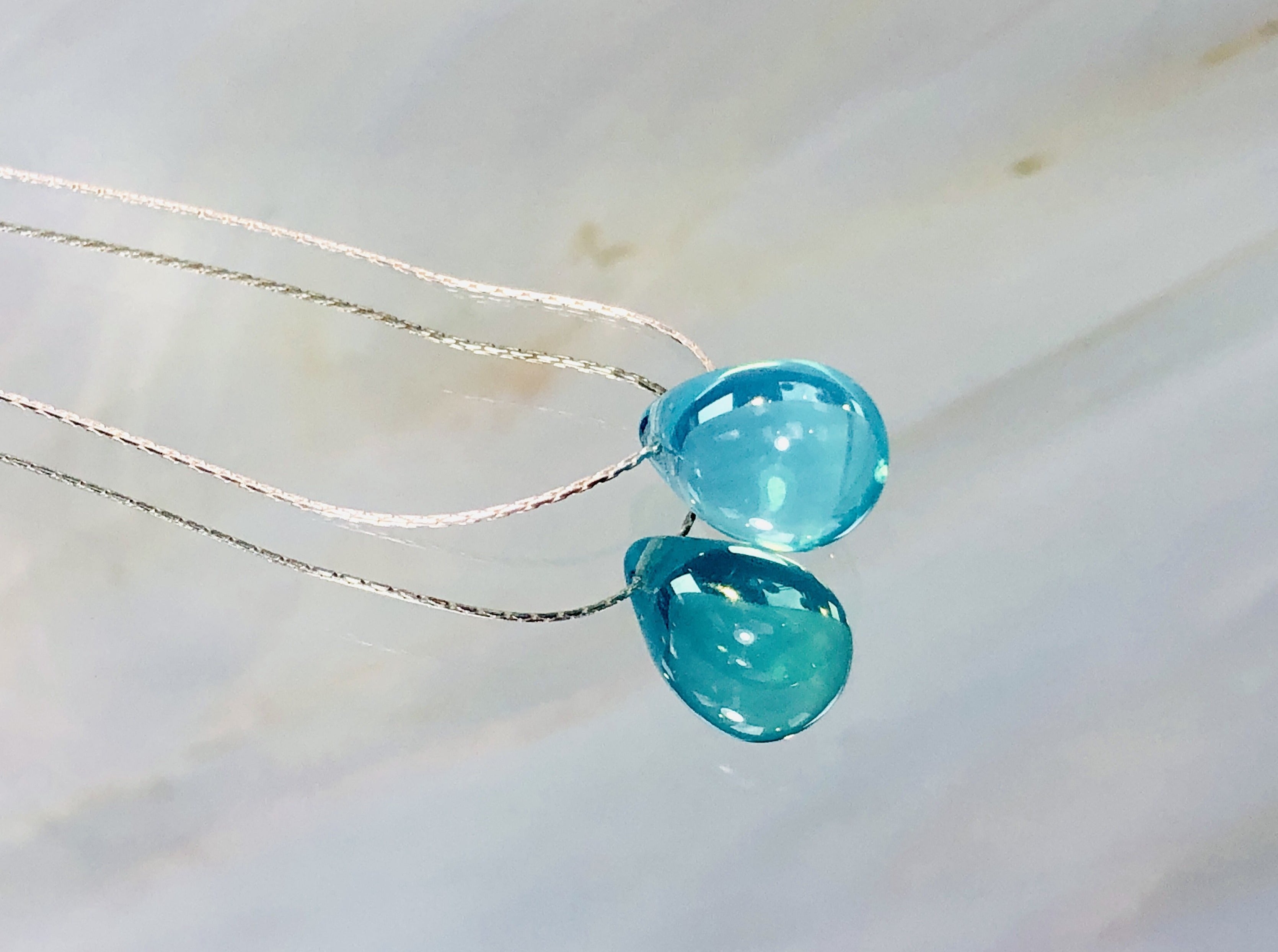Drop of Rain Solitaire Necklace, Sterling Silver Aqua Art glass Necklace
