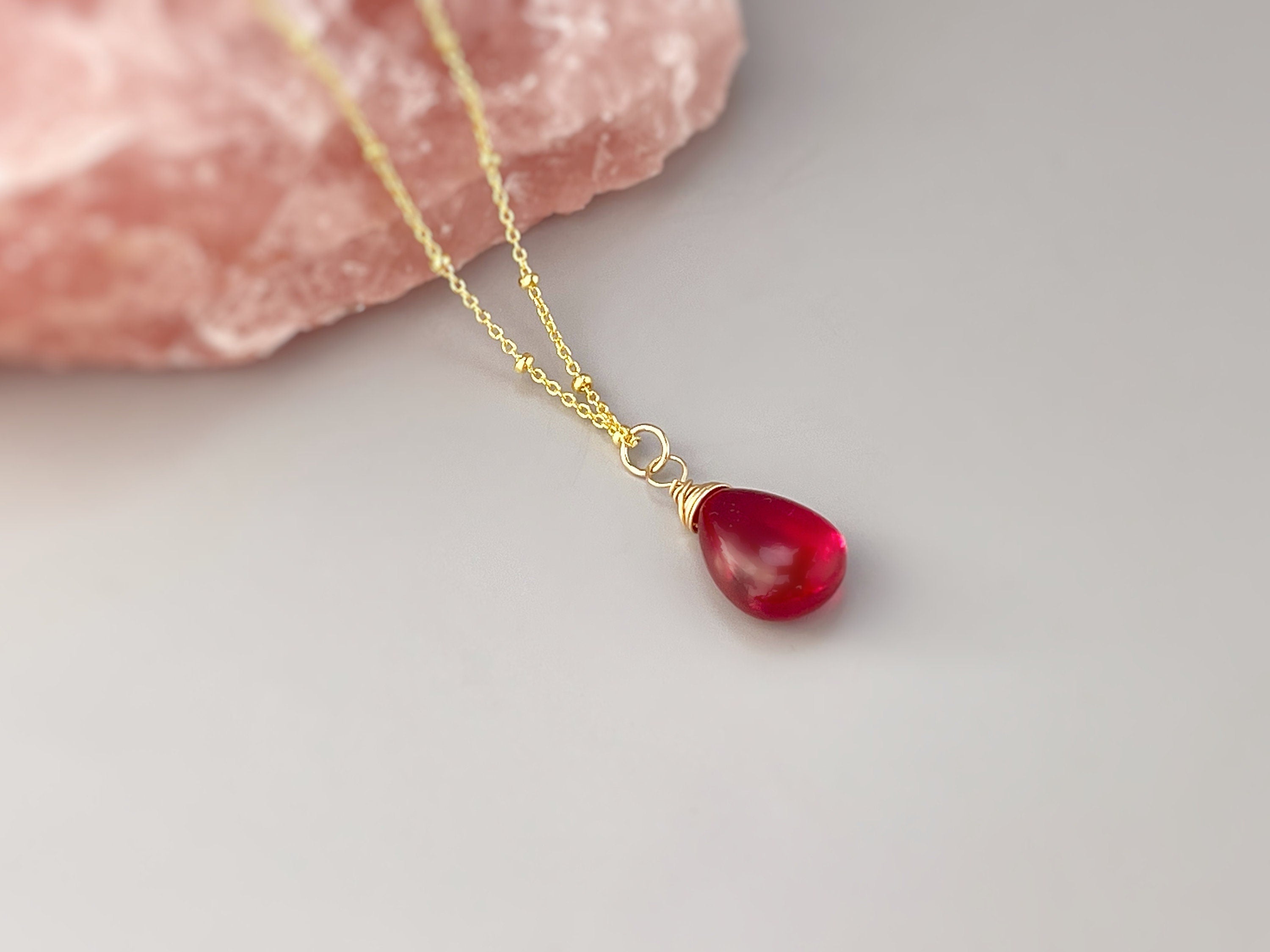 Handmade Pink Tourmaline Quartz necklace. Dainty handmade solitaire necklace. A juicy deep pink tourmaline quartz tear drop is set in your choice of sterling silver, 14k gold fill, or Rose Gold Fill. Deep fuchsia pink gemstone drop is approx 10x13mm (approx 5/8) briolette nestled in your choice of 14k gold fill, sterling silver, or rose gold fill on a matching chain. A simple, elegant handmade necklace perfect for everyday wear. The matching earrings are available in our store. A lovely gift for a wife wife, girlfriend or mom or sister.