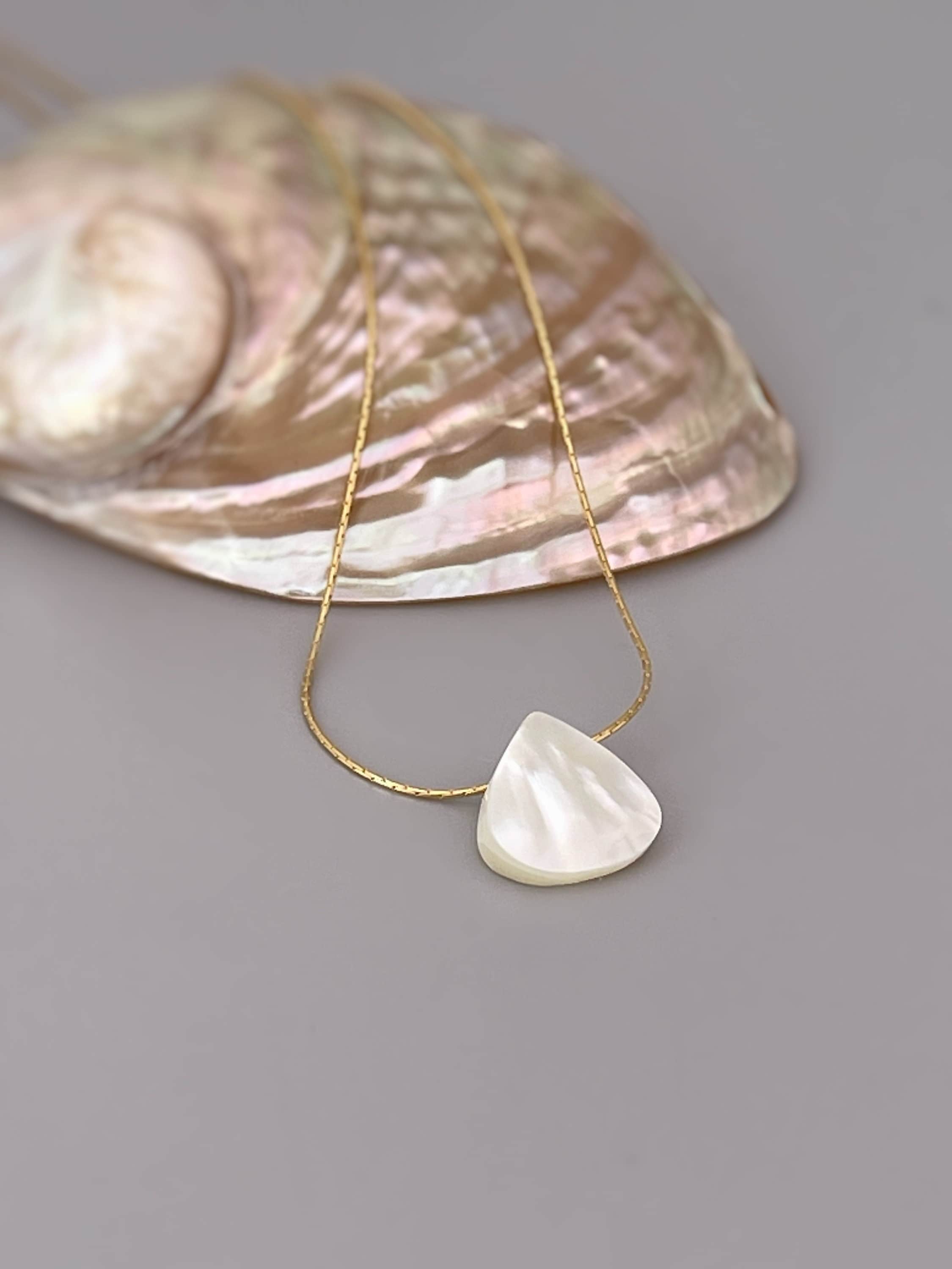Mother of Pearl Necklace, Beachy Jewelry 14k Gold, Silver Handmade Summer jewelry iridescent shell pendant, bridal jewelry for beach wedding