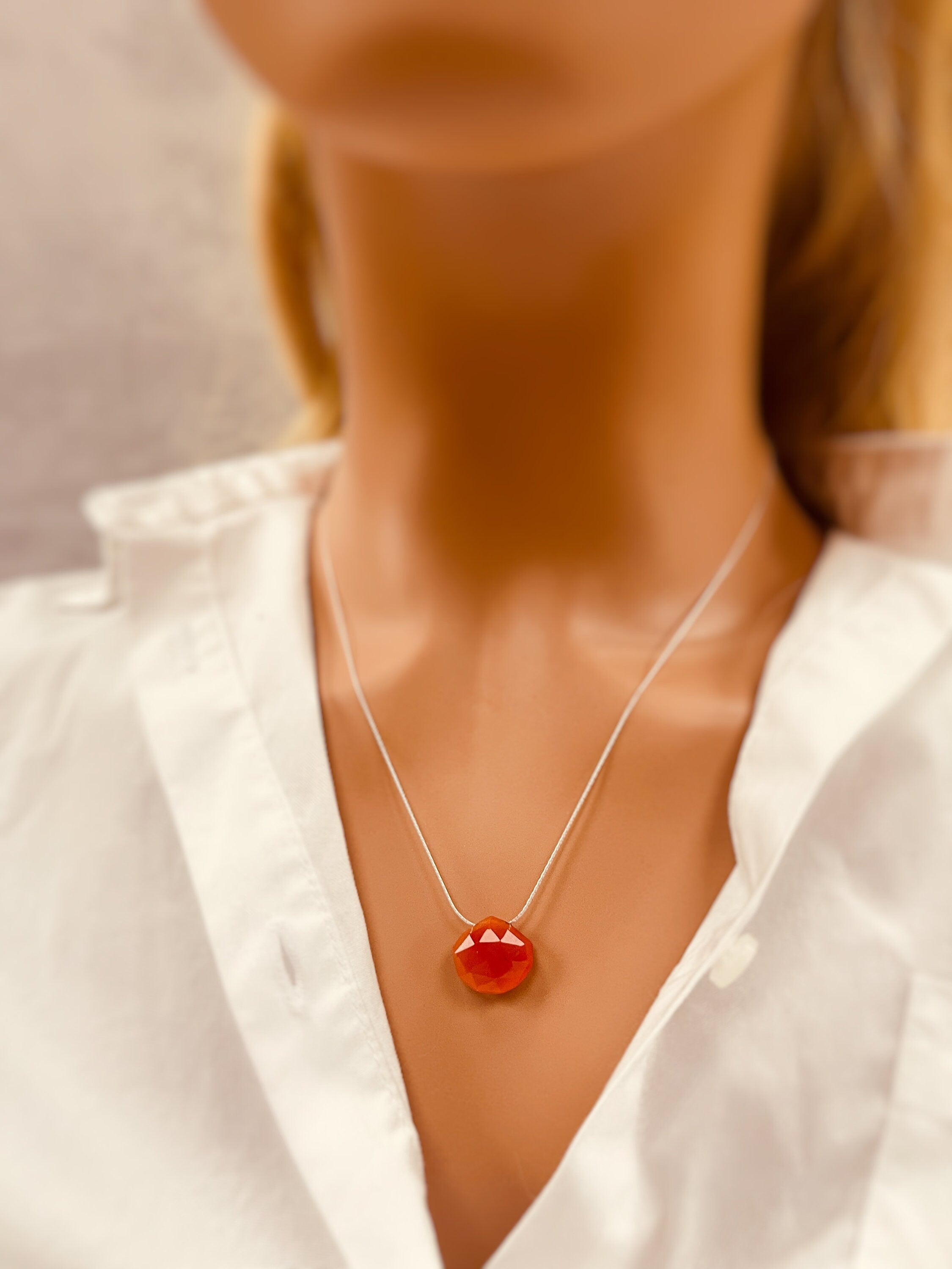 Handmade Carnelian Necklace for women. Carnelian solitaire choker necklace on a delicate sterling silver chain or 14k gold fill chain. A simple, elegant necklace perfect for everyday wear.