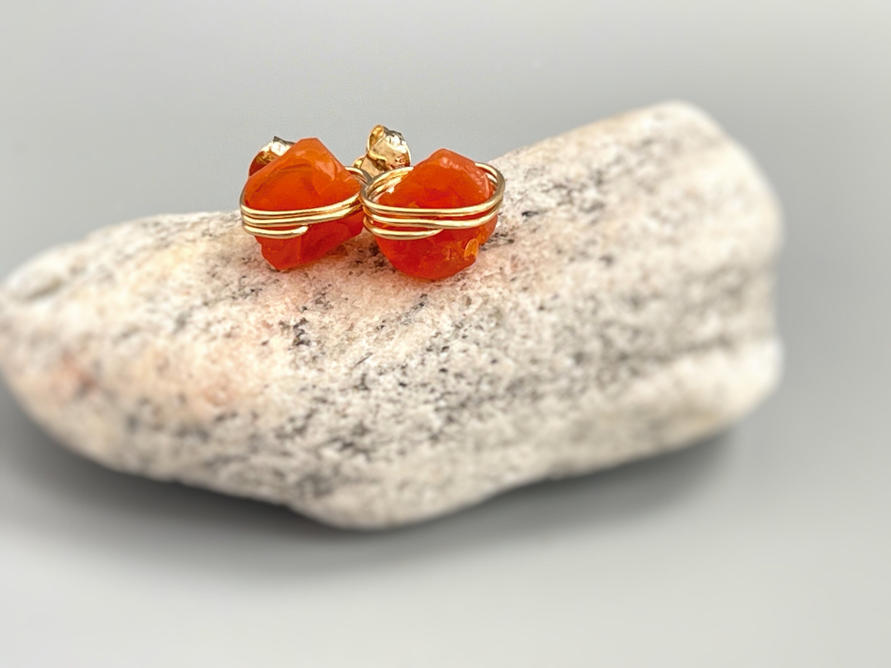 Handmade genuine Raw Carnelian Stud Earrings Dainty organic natural Carnelian stone stud earrings in your choice of 14k gold fill, sterling silver or rose gold fill. Raw Carnelian stones are approximately 8-9 mm (about 1/4"). Each raw gemstone is organic and unique so please allow for some natural variations. Lovely, simple, minimalist dainty earrings for women perfect for everyday wear and great as gifts for bridesmaids, moms and wives!