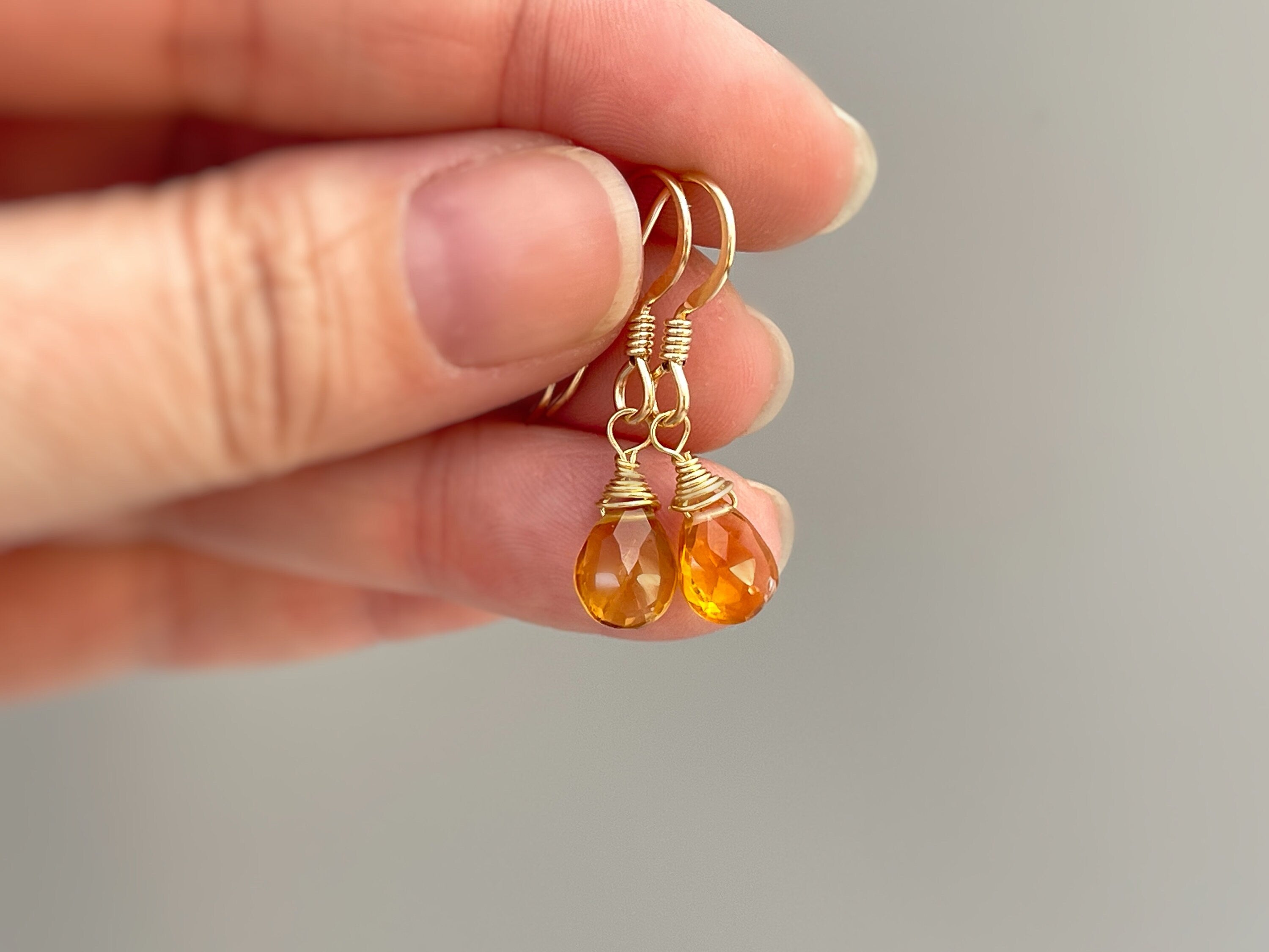Dainty Citrine earrings dangle tiny teardrop earrings Gold