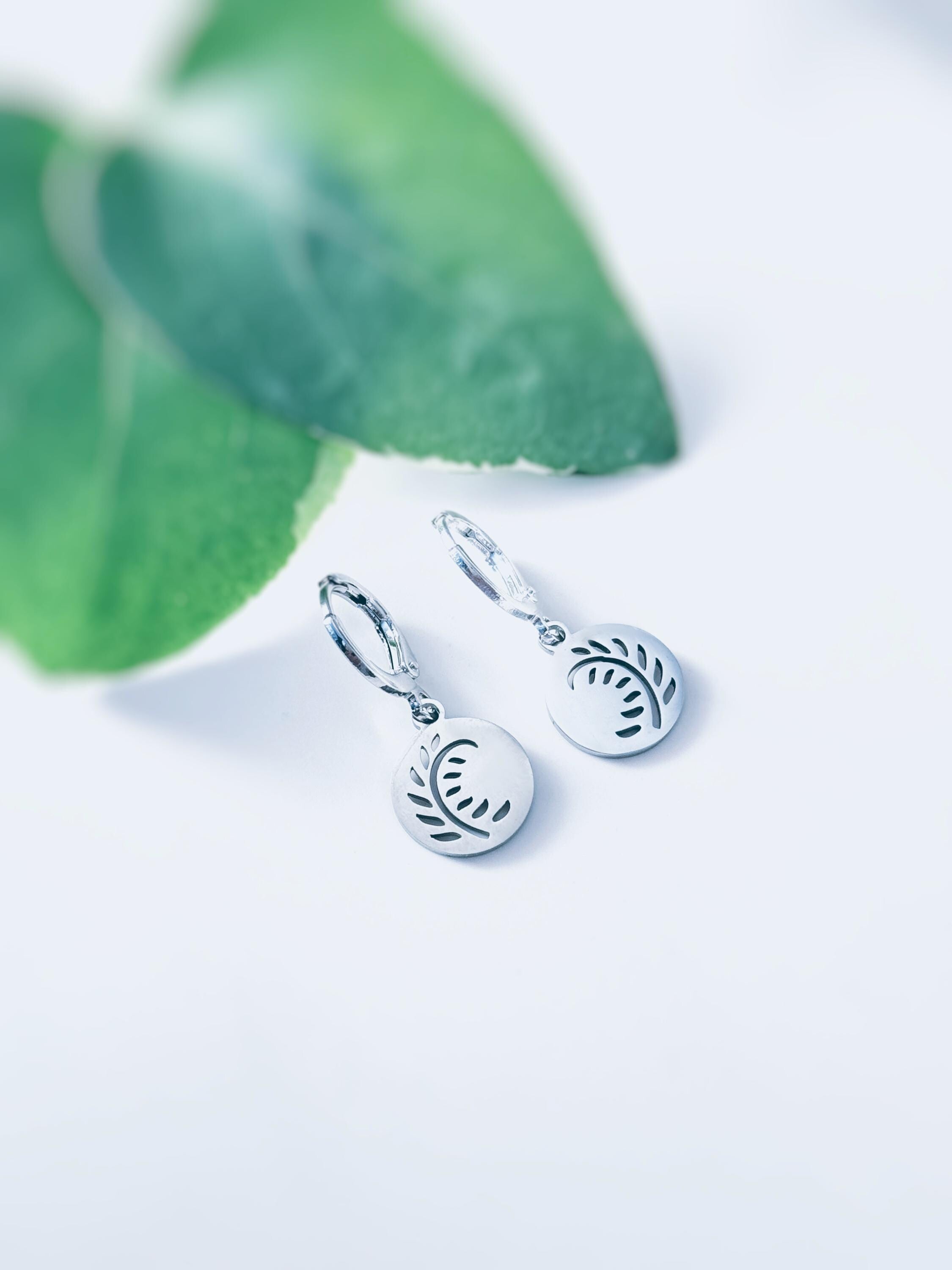 Leaf Fern Earrings Huggie Hoops dangle Sterling Silver lightweight botanical plant earrings Handmade Jewelry gift for gardener sister friend