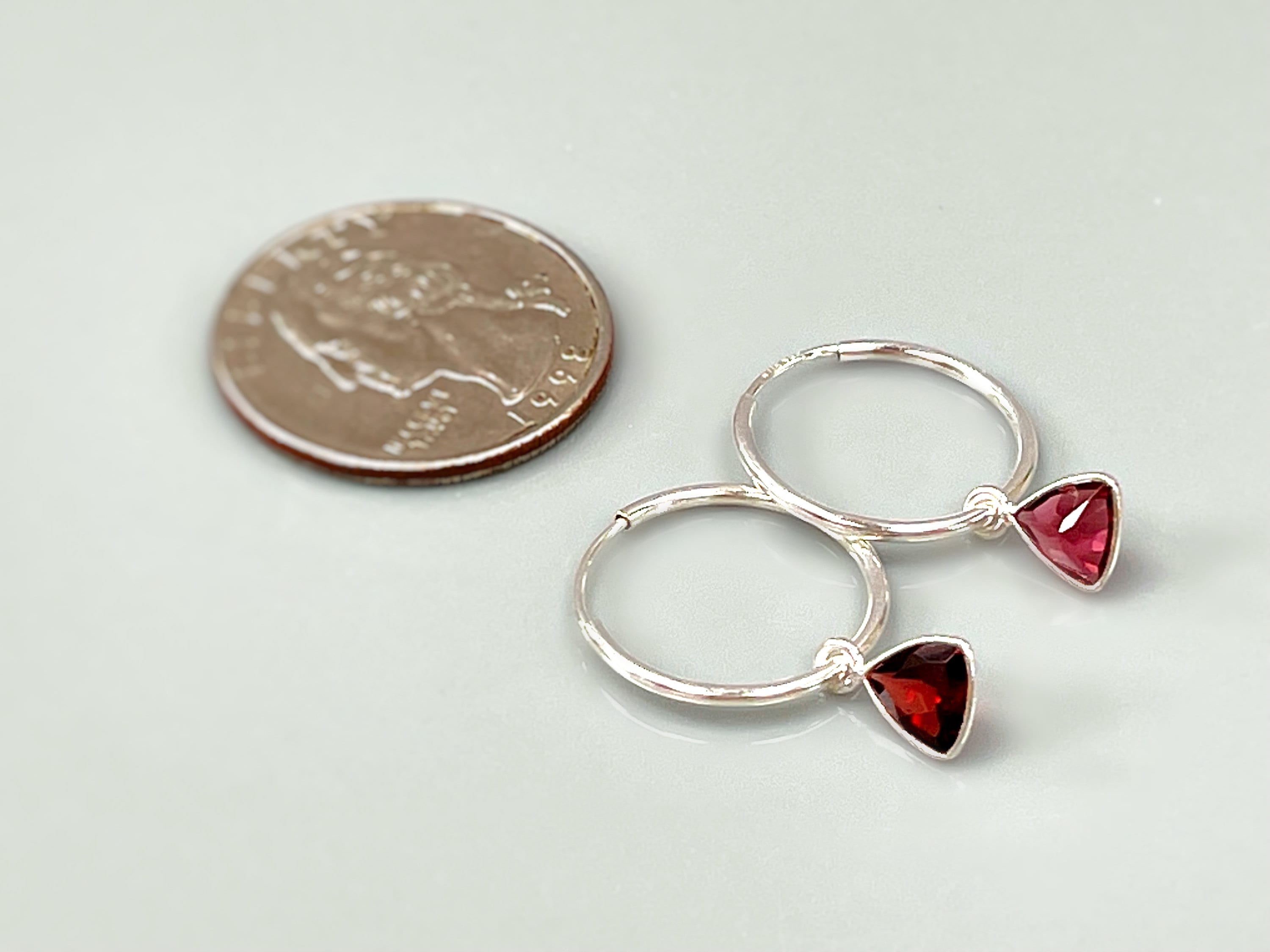Garnet Hoop earrings Sterling Silver Dangly huggie earrings dainty gemstone earrings handmade jewelry red
