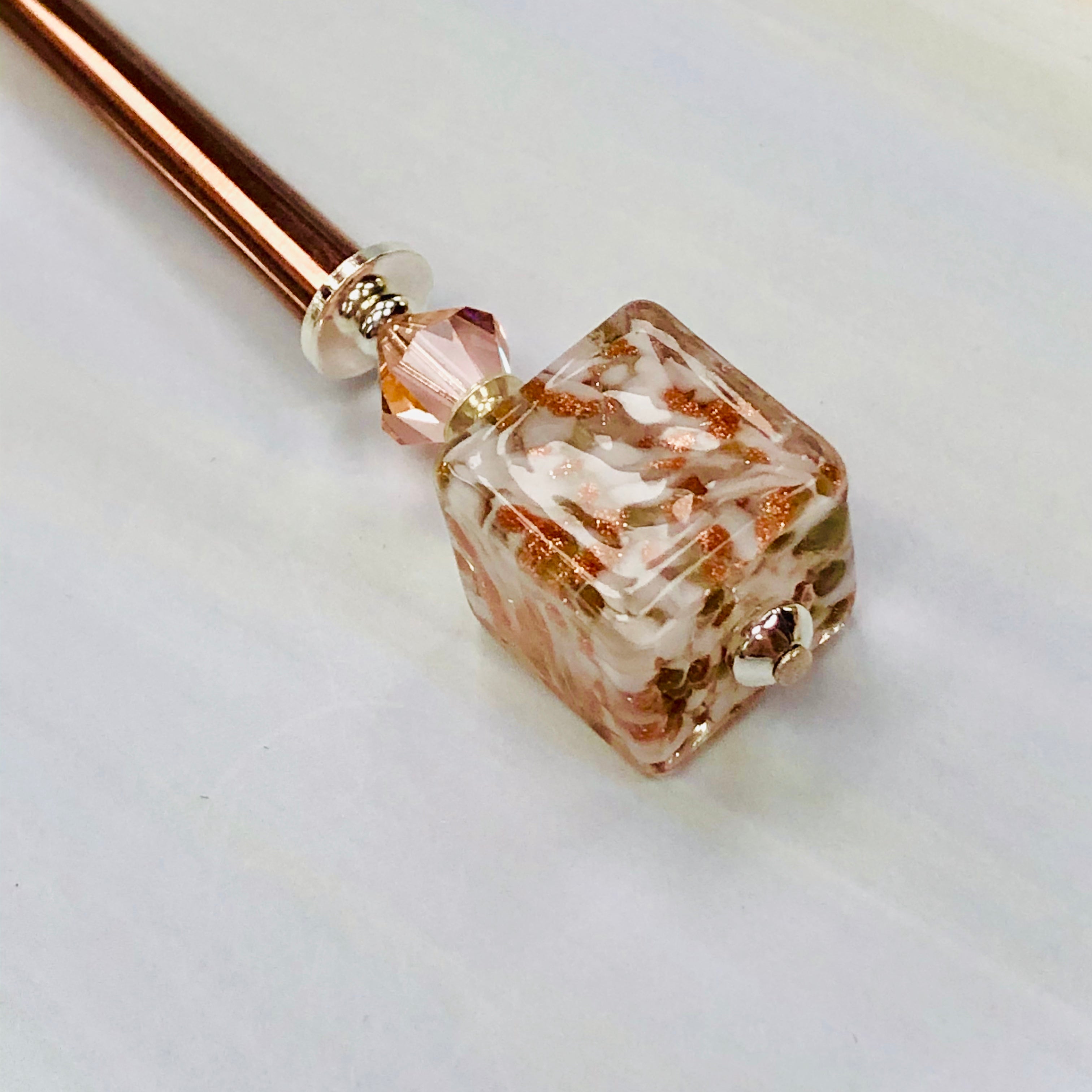 Elegant Silver Hair Sticks, Gold Hair Sticks, Kanzashi, wood hair sticks, sweater and Shawl Pins hand crafted in fine woods, sterling silver, gold and rose gold with precious gemstones, and artisan hand blown art glass. Wood and metal Kanzashi Gemstone Hair Sticks.