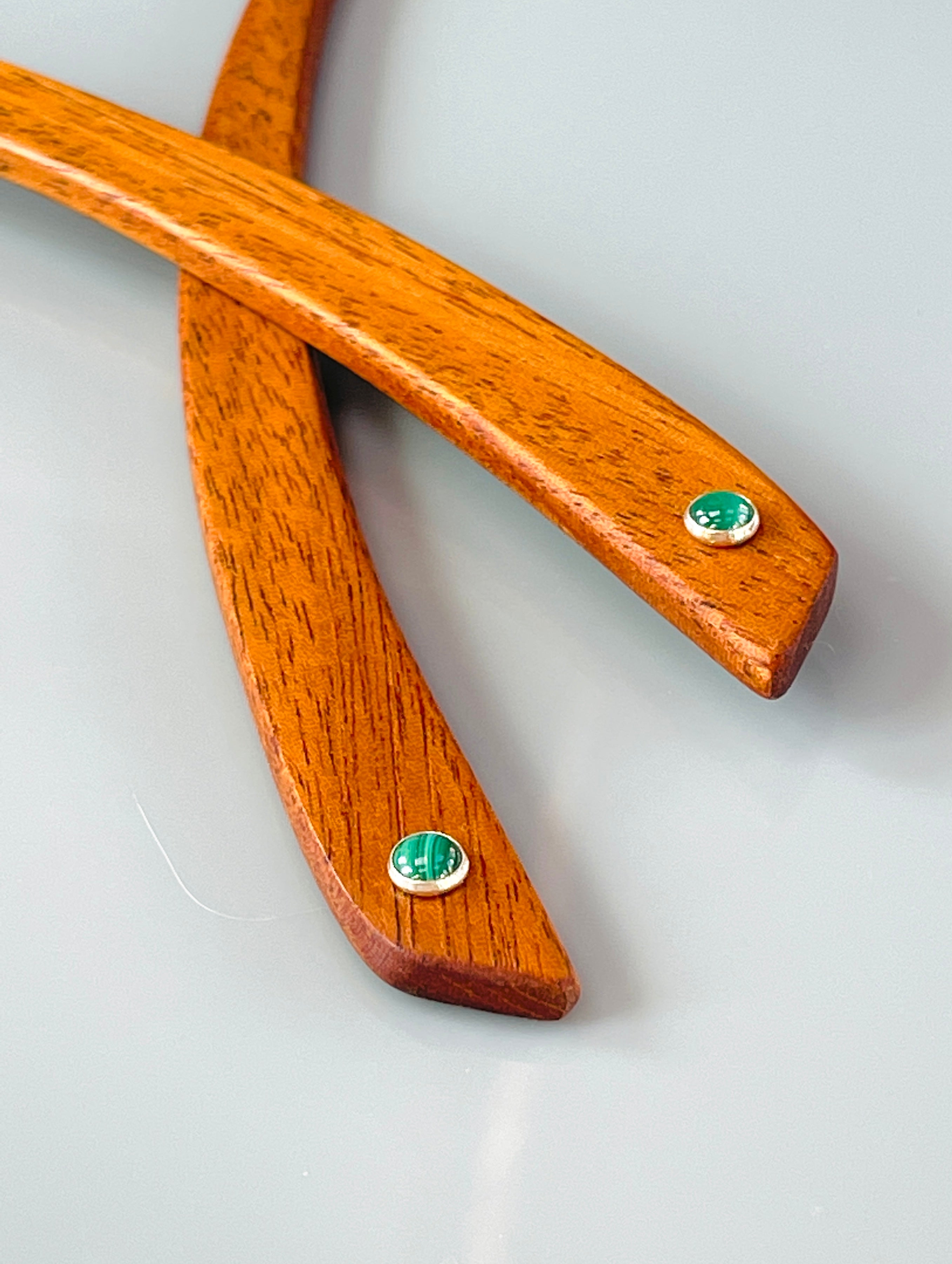 Mahogany and Malachite Wood Hair Sticks