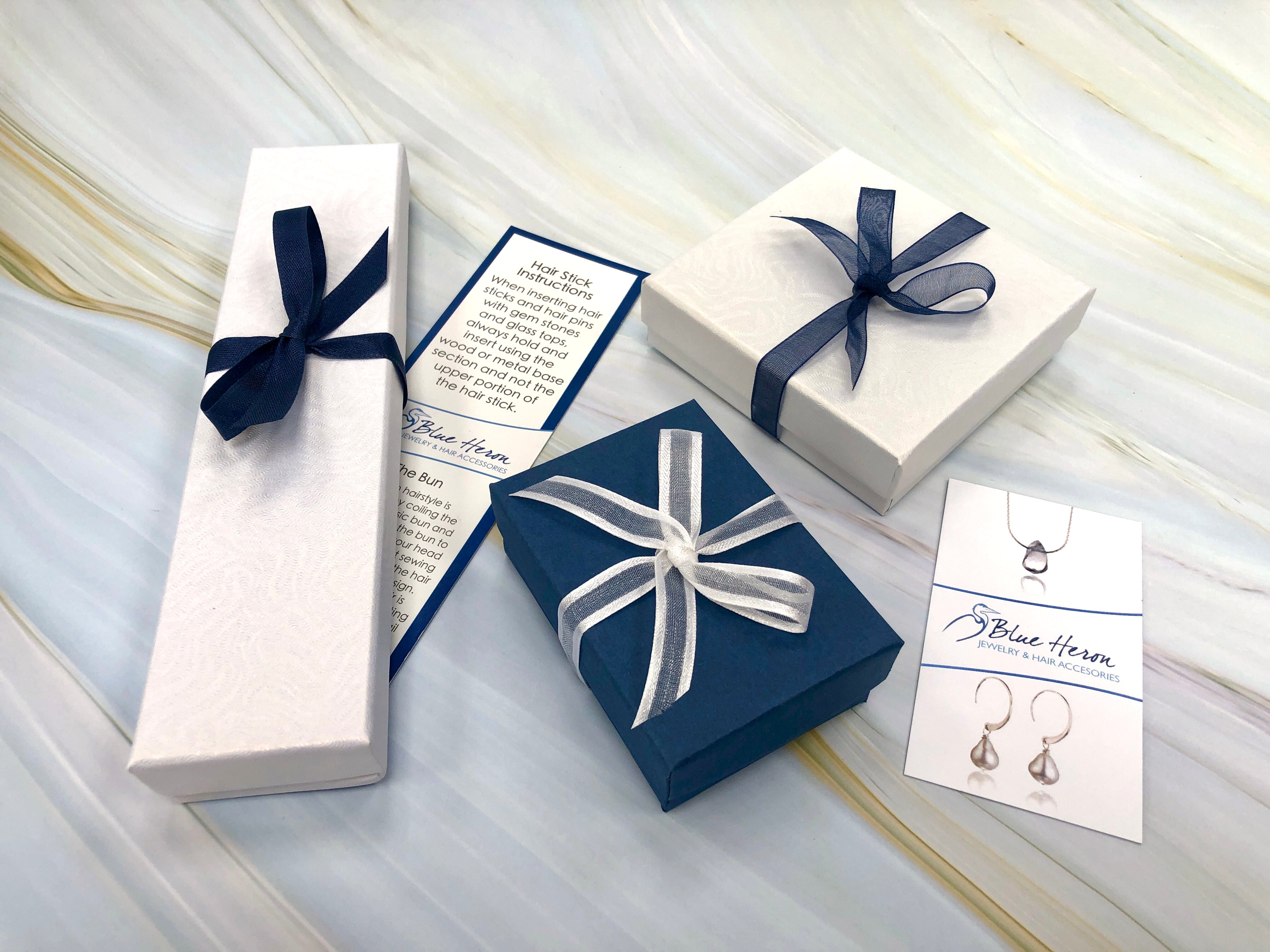 All of our products are ready to gift with an included organza bag and gift box tied with a ribbon.