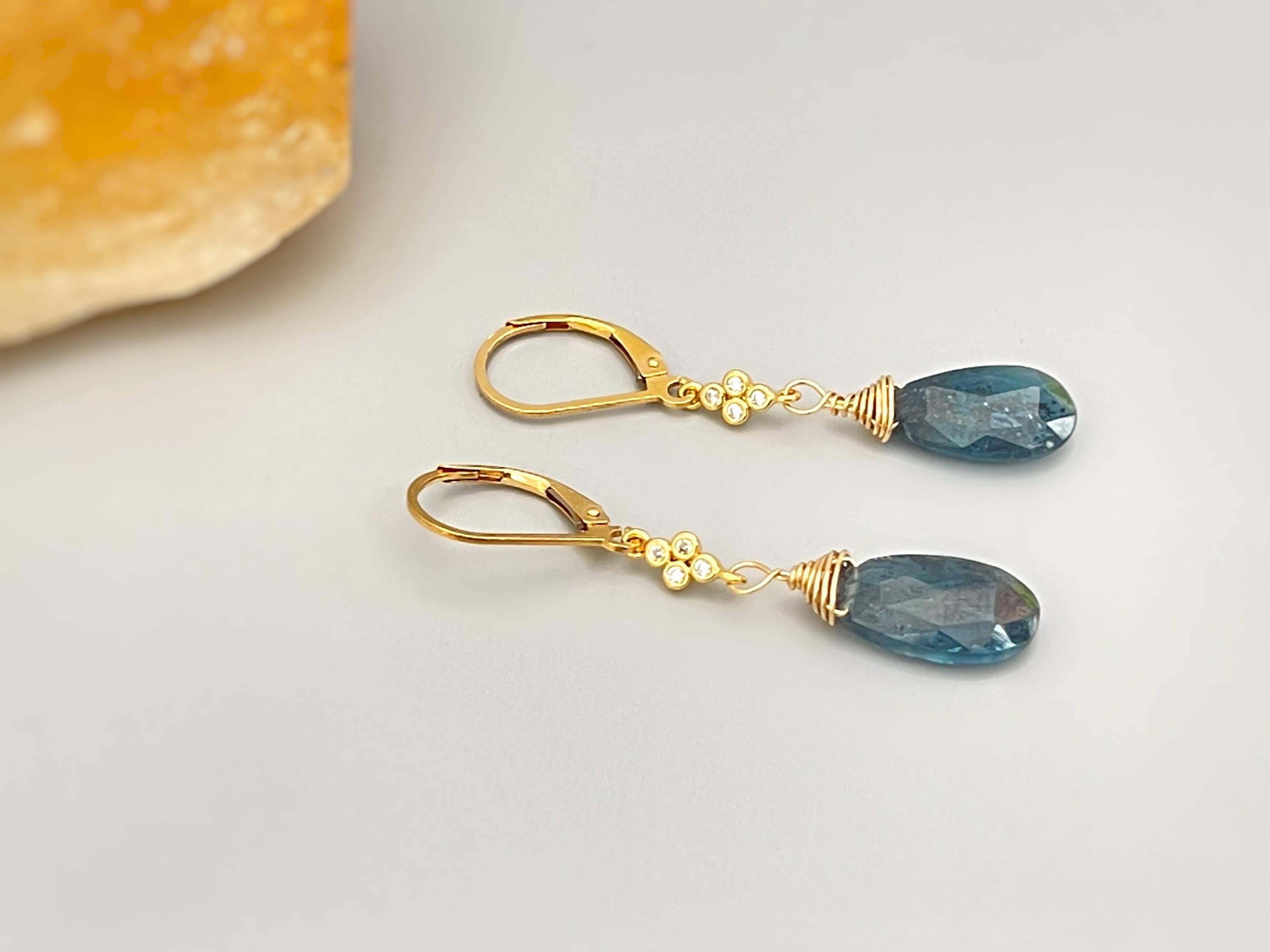 Moss Kyanite earrings dangle, Gold, Sterling Silver Crystal boho jewelry