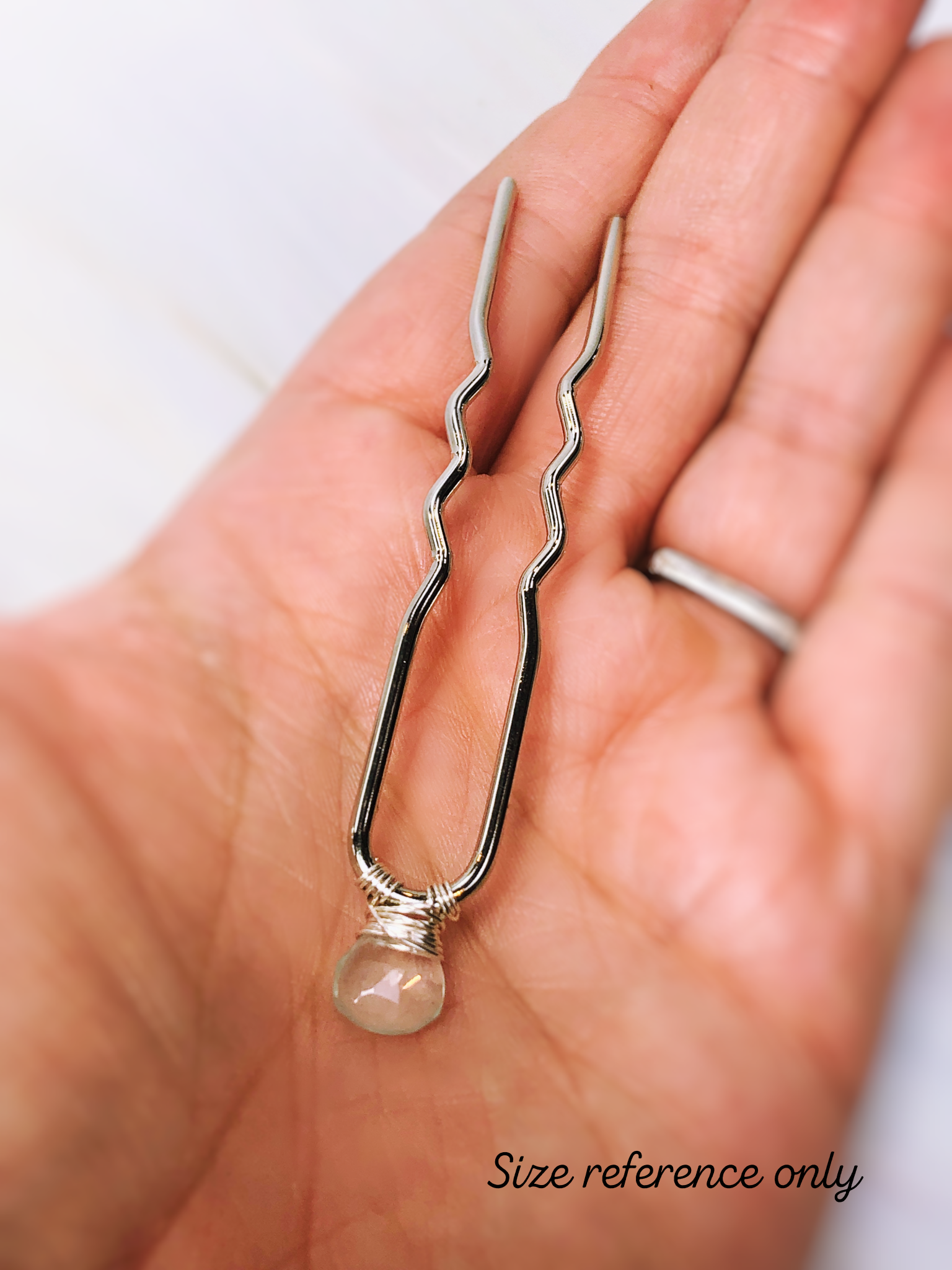 Moonstone Silver Gemstone Hair Pin, Luxury Hair Pin, silver metal hair pin