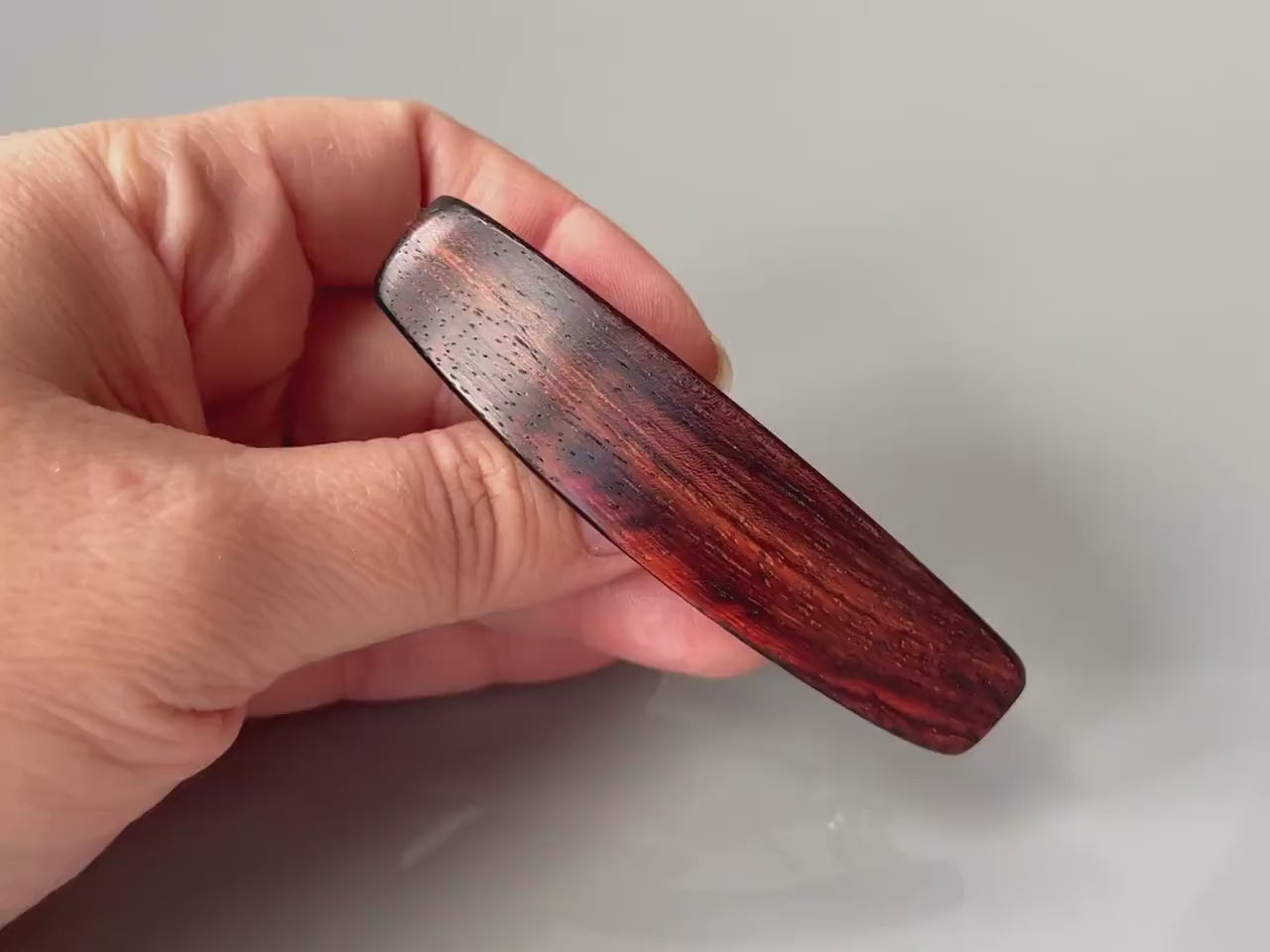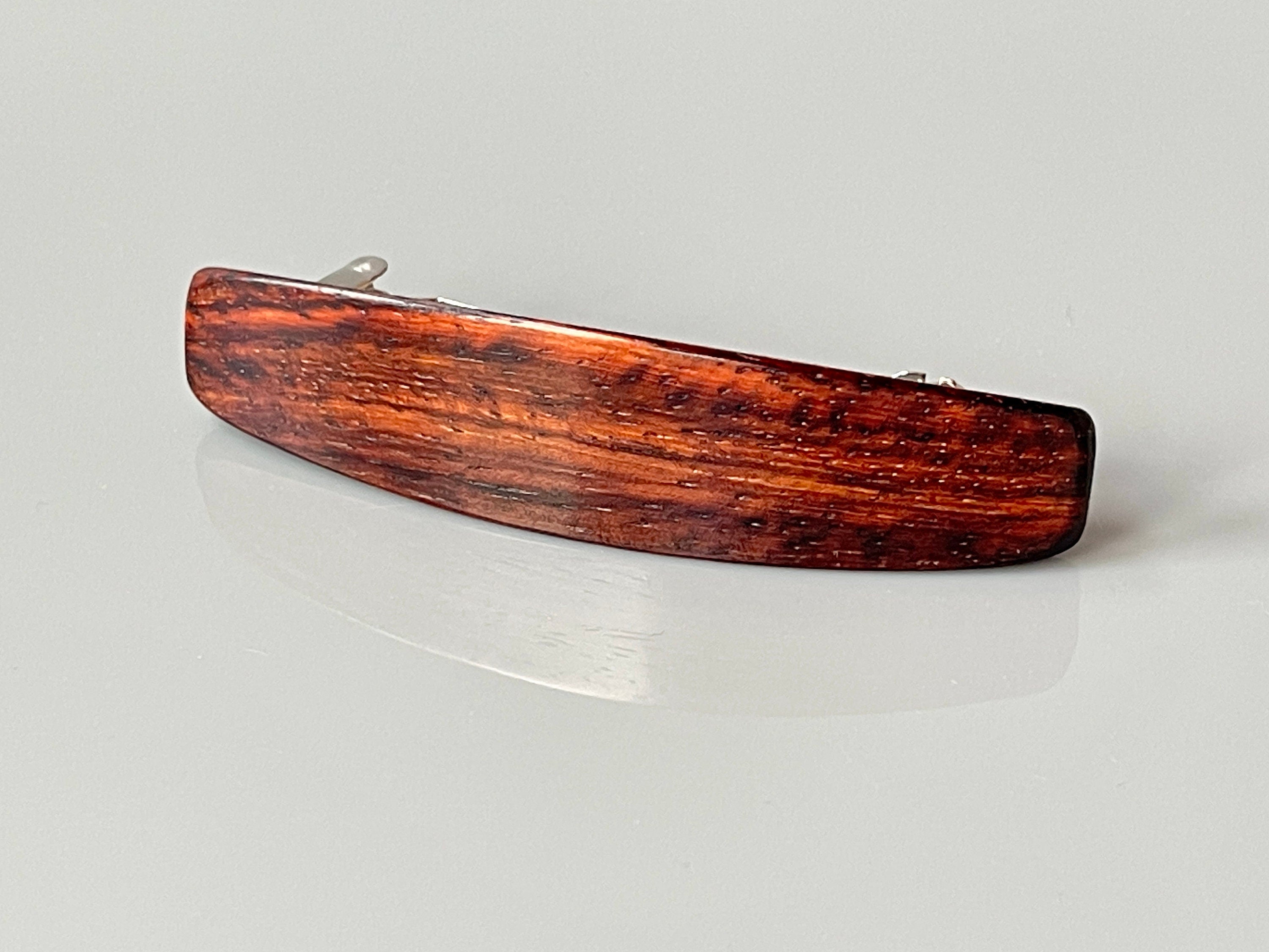 Handcrafted wood barrette handcrafted in East Indian Rosewood with lovely color and grain figure. Size: Medium. This is stunning old growth rosewood of incredible quality. I purchased this rosewood from an elderly luthier who was retiring. I am a zero waste shop. Nothing,not even my dust goes to waste.