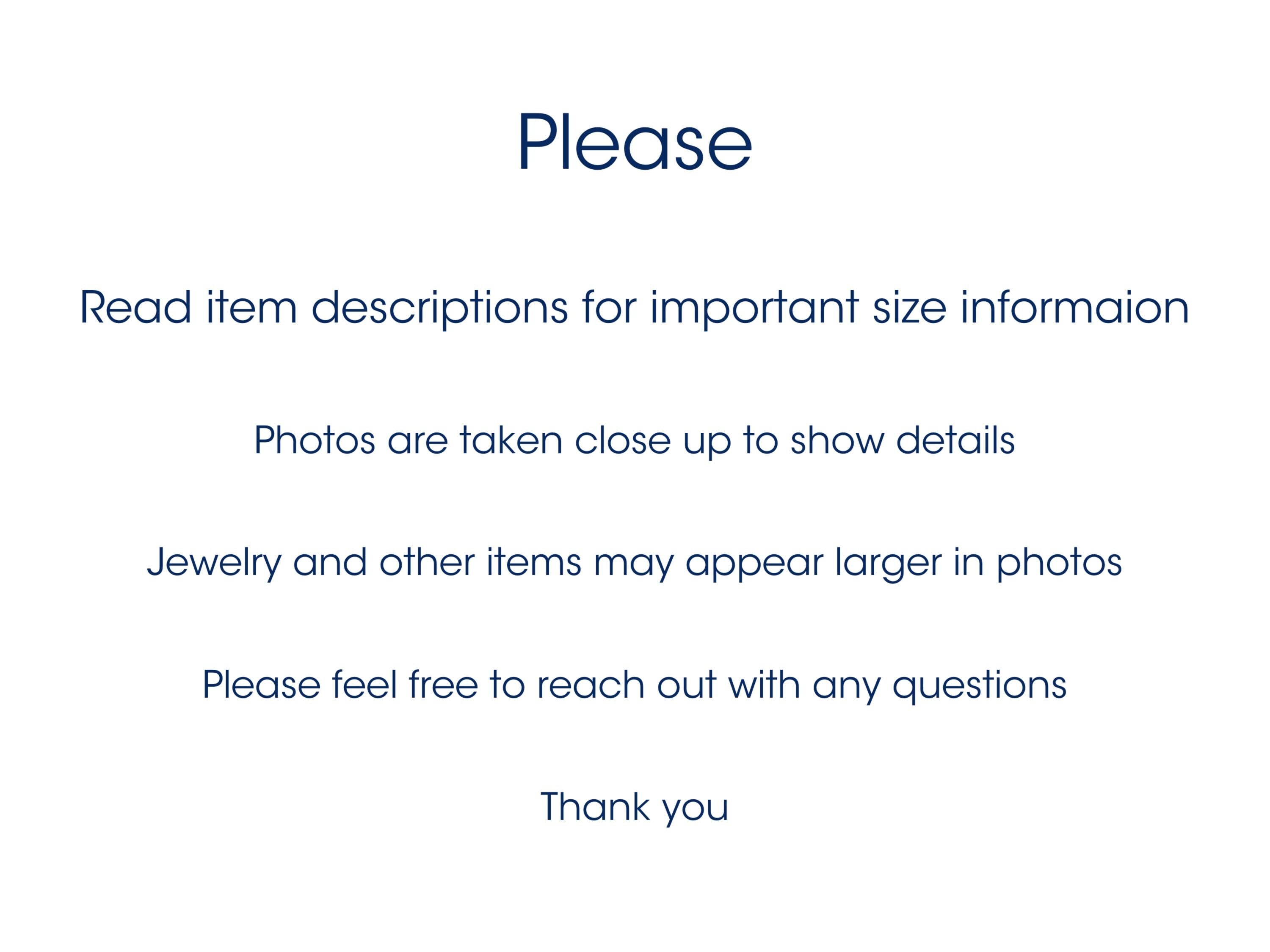 PLEASE note measurements and size reference pictures. Our jewelry and hair accessories are photographed close up to show detail and may appear larger than they are. We are happy to help with any questions.