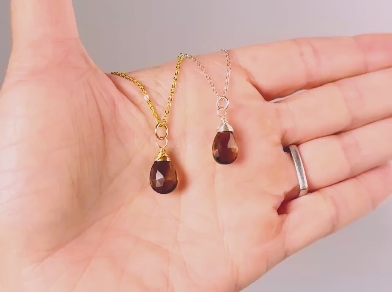 Dainty Smoky Quartz Necklace Sterling Silver, 14k Gold Fill handmade brown gemstone Jewelry Handmade Gift for wife, sister, girlfriend mom