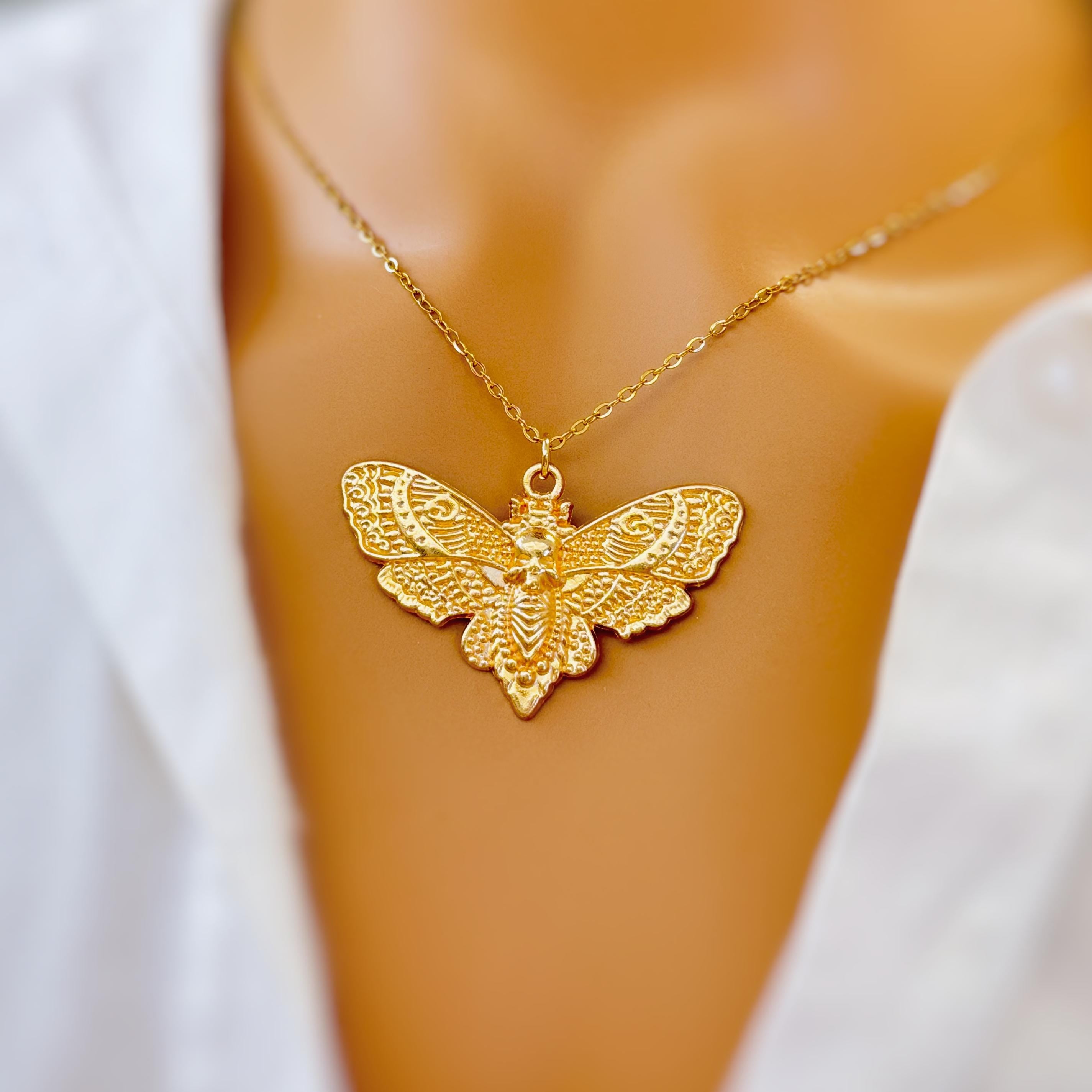 Gold Moth Necklace handmade silverwhimsigoth jewelry statement pendant gothic insect bug jewelry goth deathshead moth symbolic rebirth gift