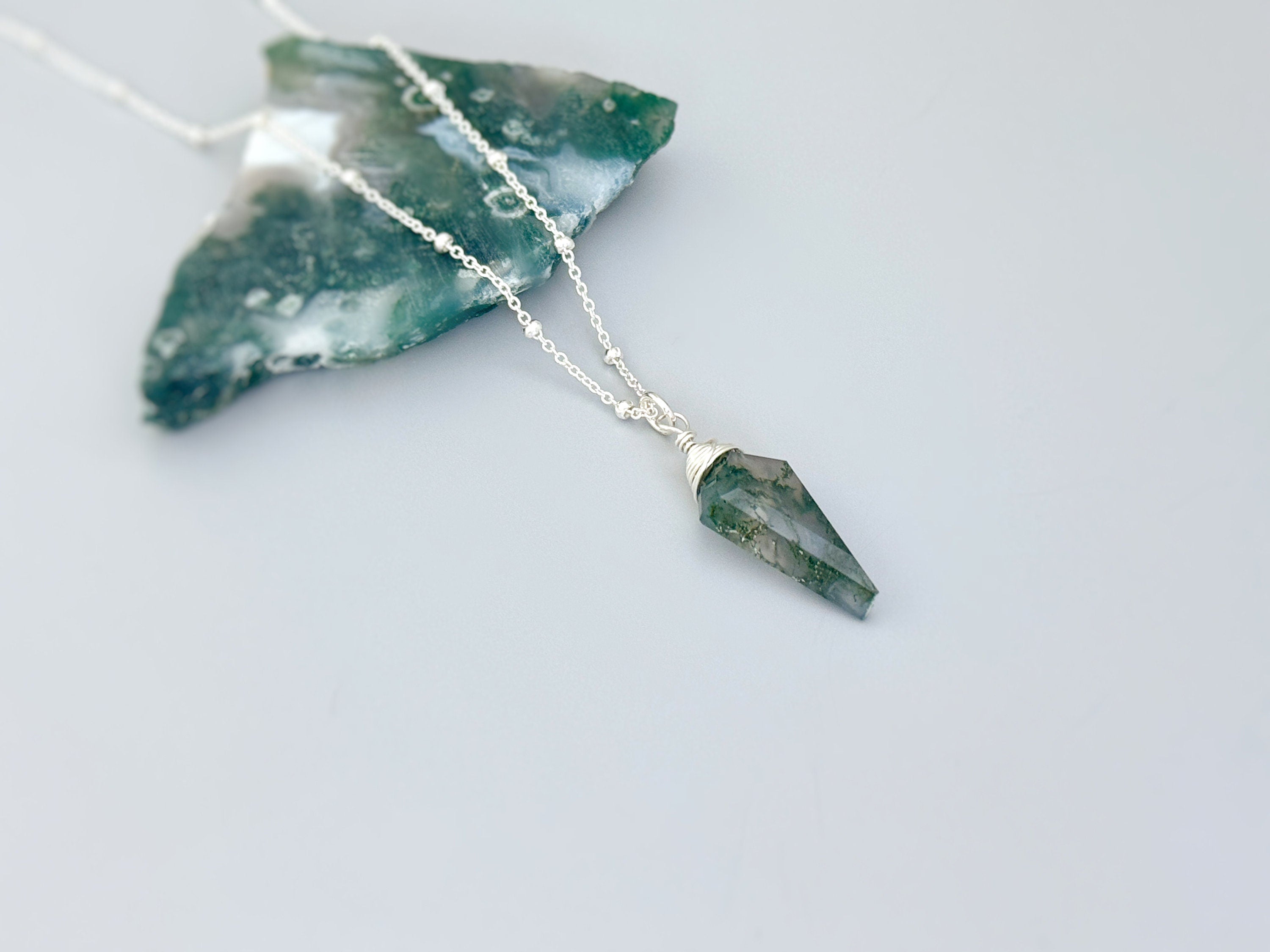 Moss Agate Pendant Necklace Rose Gold, 14k Gold Fill, Sterling Silver