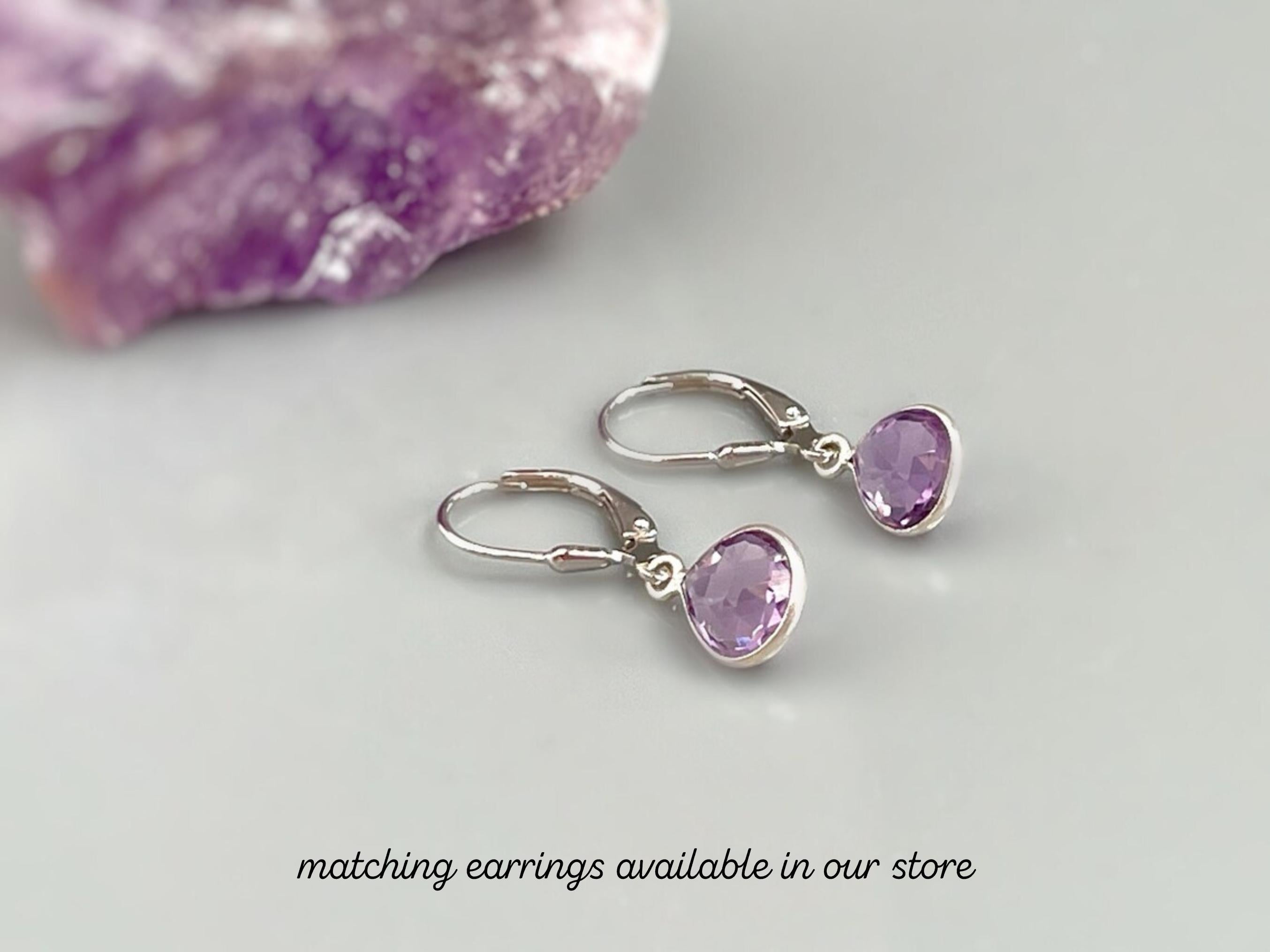 Pink Amethyst Necklace Sterling Silver handmade purple gemstone pendant February birthstone jewelry layering necklace for women gift for mom