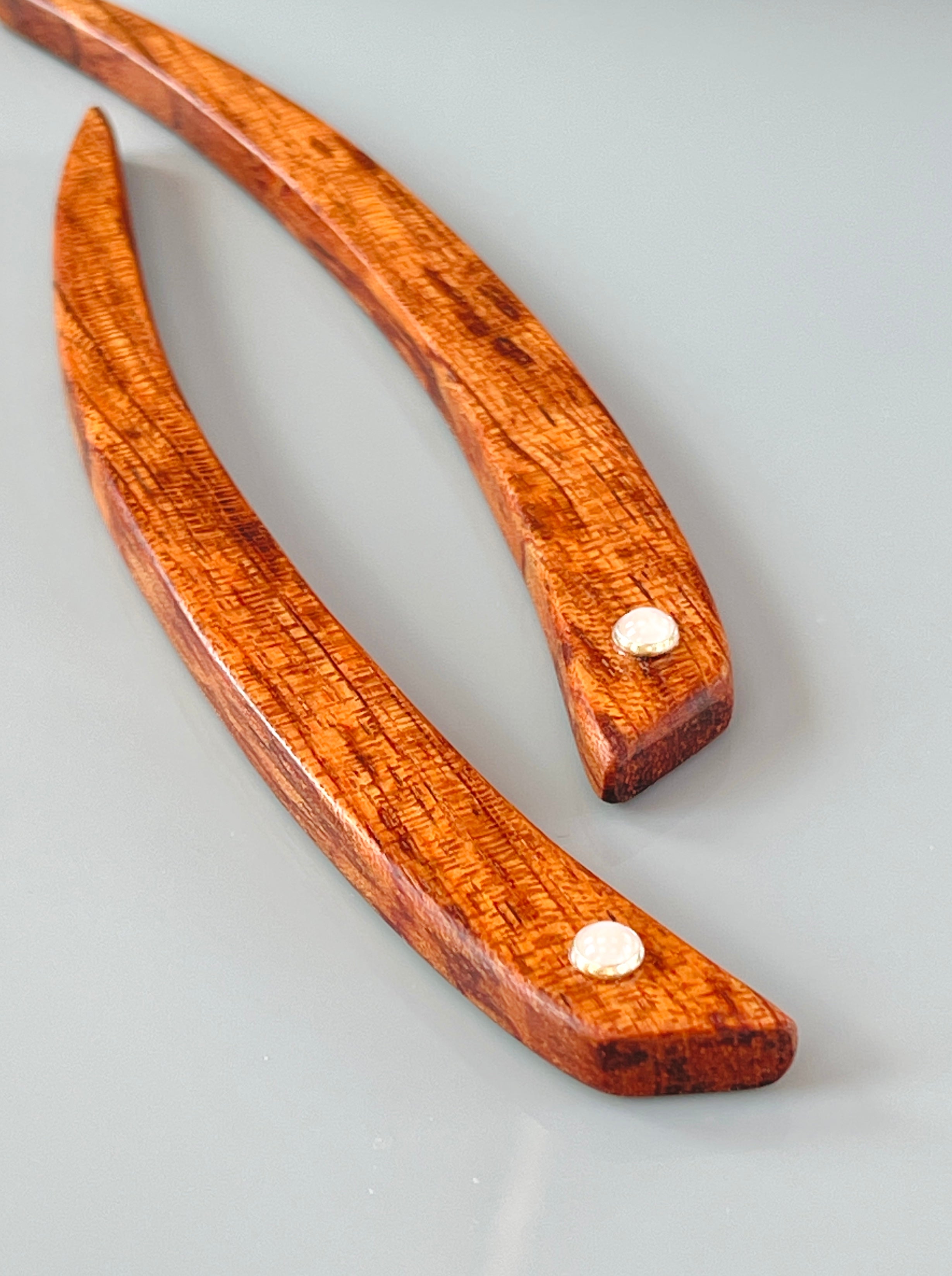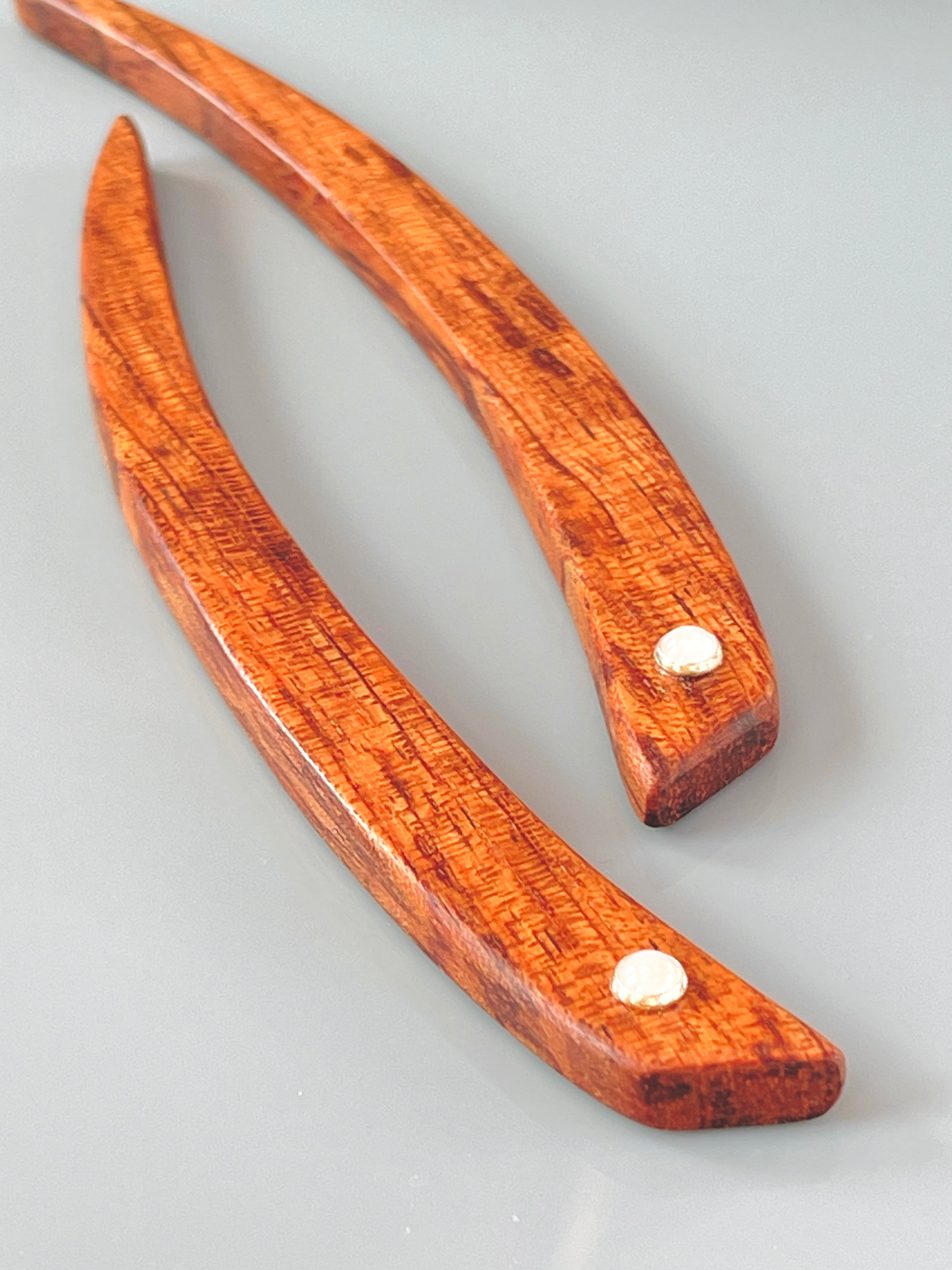 Bubinga and Rose Quartz Wood Hair Sticks