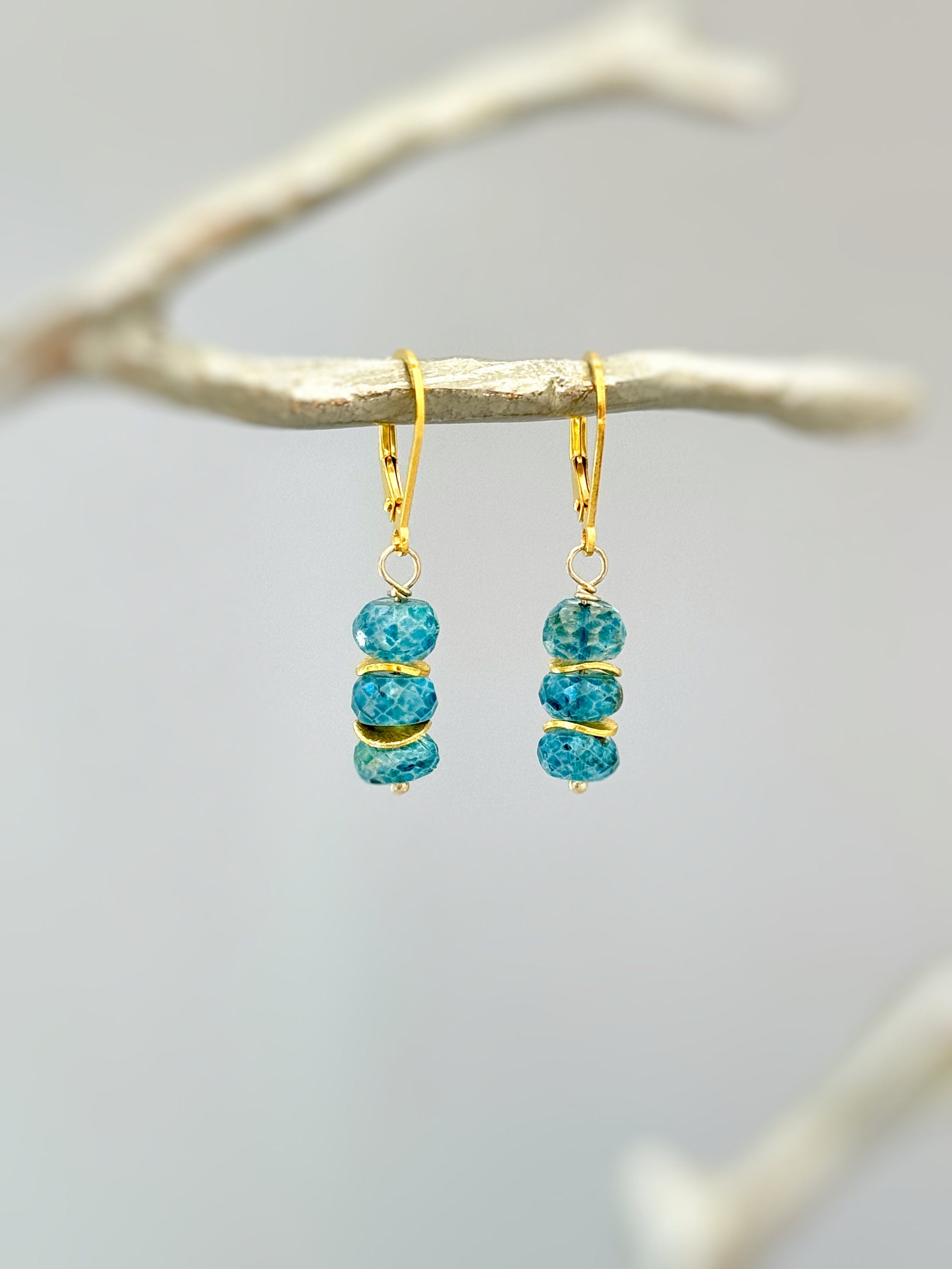 Dainty handmade genuine London Blue Topaz dangle earrings for women. Lightweight everyday earrings for work. Sparkling London Blue topaz gemstone rondelles hang from your choice of Sterling Silver, 14k Gold Fill, or Rose Gold Fill French hook ear wires or leverbacks. Gemstone drops are dainty just under 1/4" wide. Simple, elegant everyday earrings. These would make a lovely gift for mom or wives with a November birthday also lovely bridesmaids gifts.