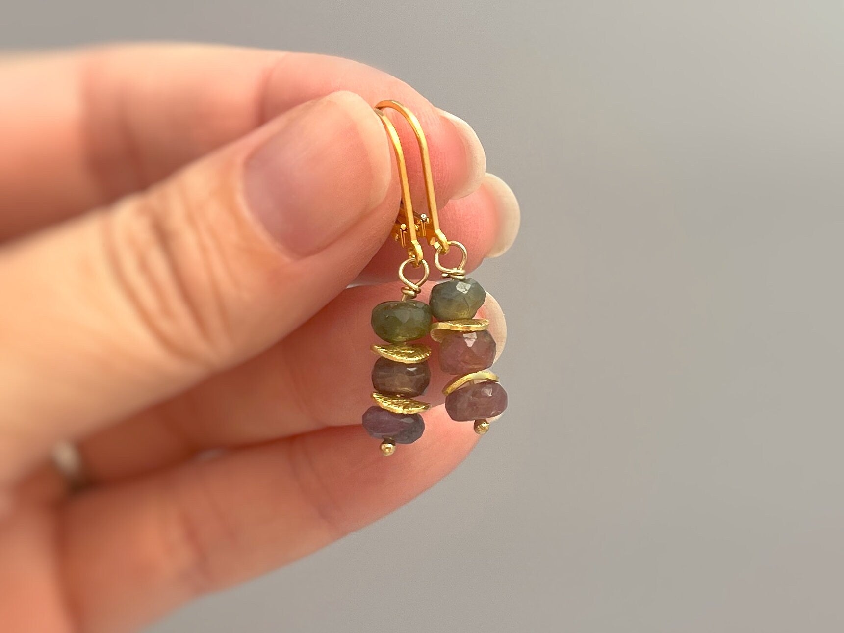 These earrings are Dainty approx 1 1/4" (35mm) long including the ear wires / leverbacks. The gemstones are approx. 1/4" wide