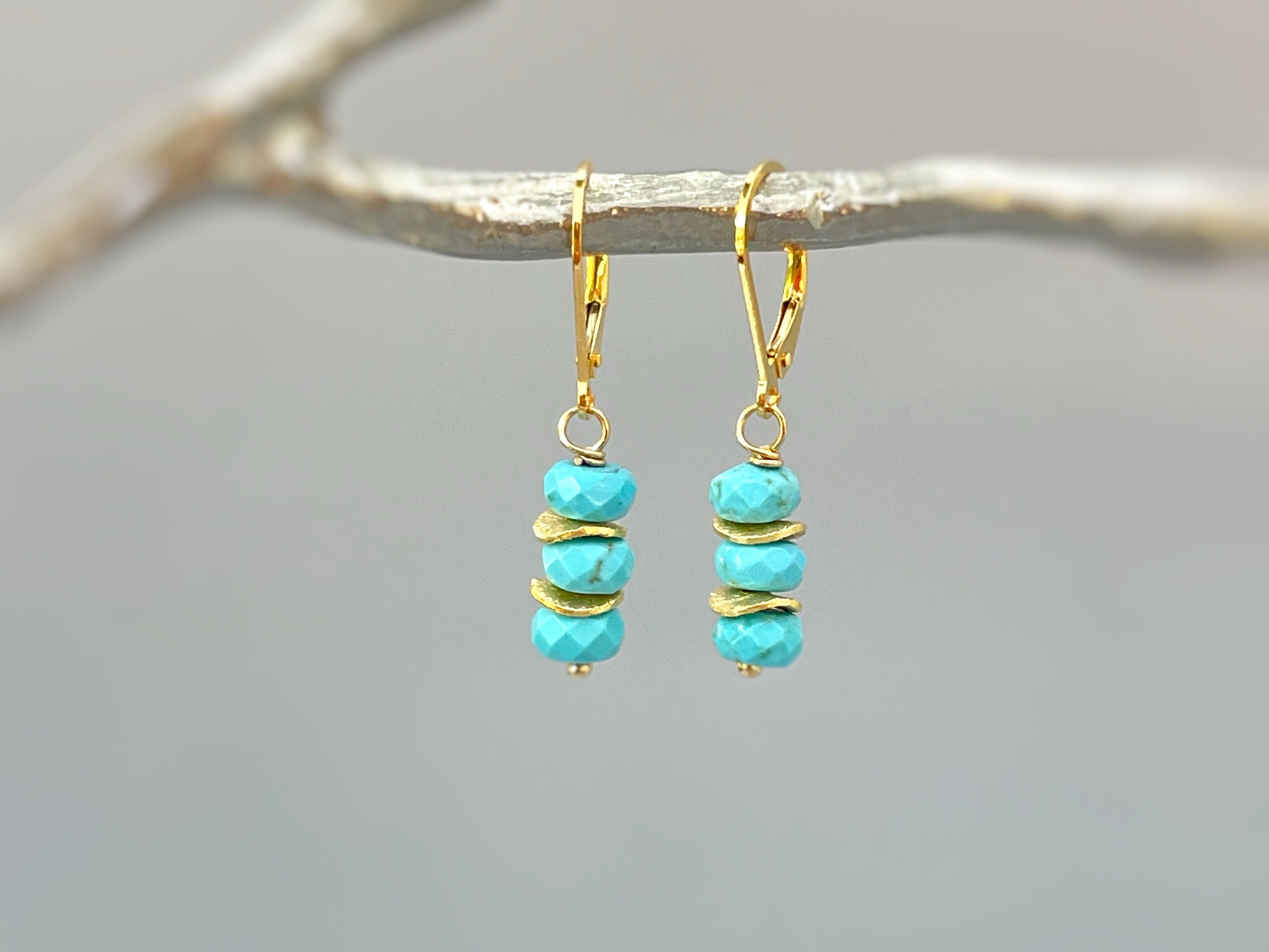 Dainty Everyday Turquoise Earrings dangle sterling silver, gold, rose gold