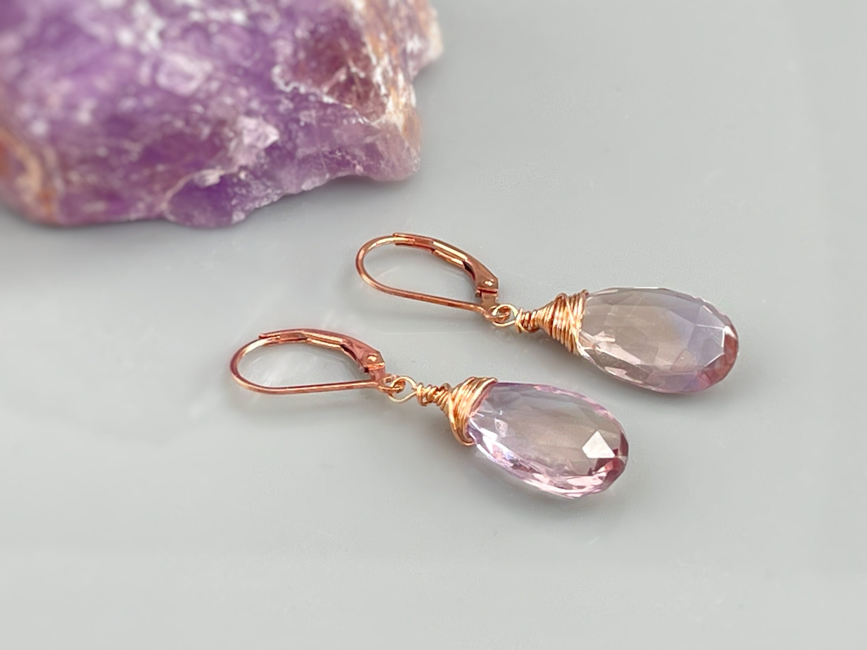 Ametrine Earrings Solid 14k Gold, Rose Gold