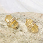 Dainty Citrine Crystal point earrings in sterling silver. Also available in gold fill. Stones are approximately 10mm long x 6mm wide wide. Shipped with silicone comfort backs.