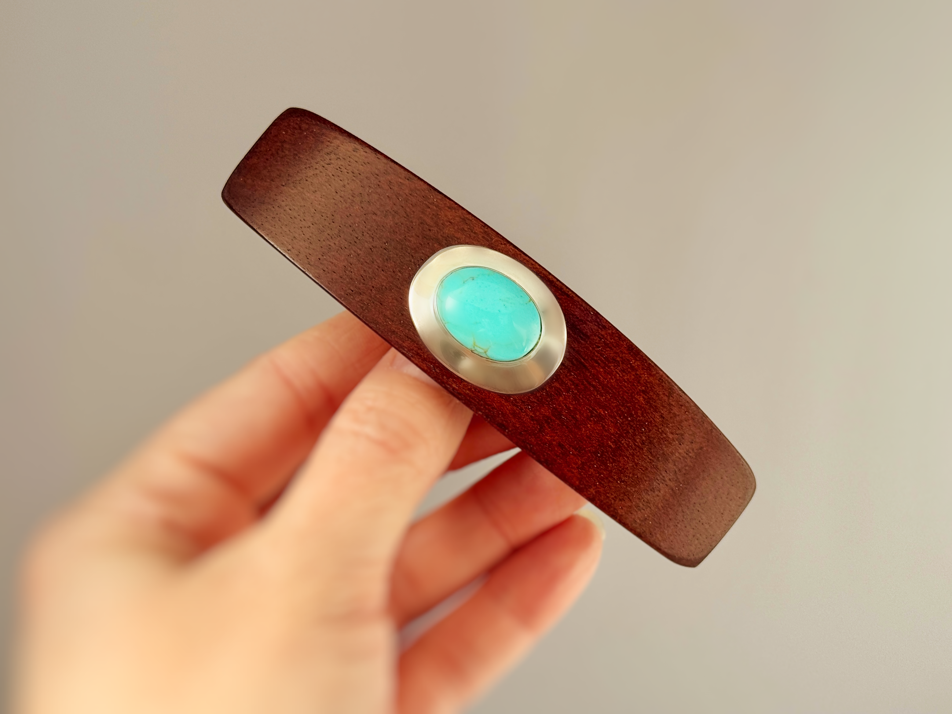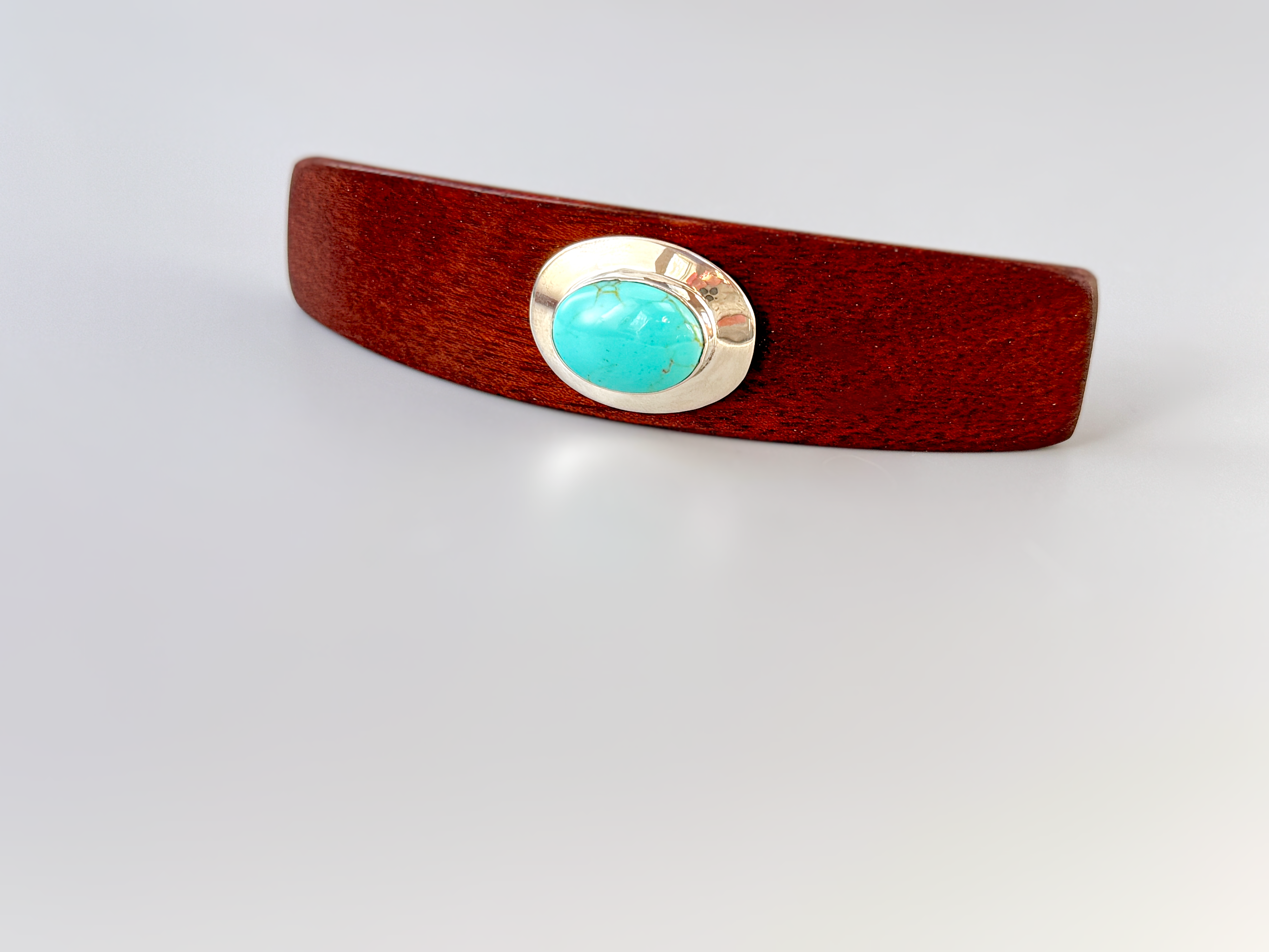 Bloodwood Turquoise Silver Gemstone barrette Large Southwestern Hair Clip