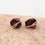 Dainty organic raw Garnet stud earrings in your choice of sterling silver, 14k gold fill and rose gold fill. Stones are approximately 9 mm long x 6mm wide. Each gemstone is unique please allow for some natural variations.