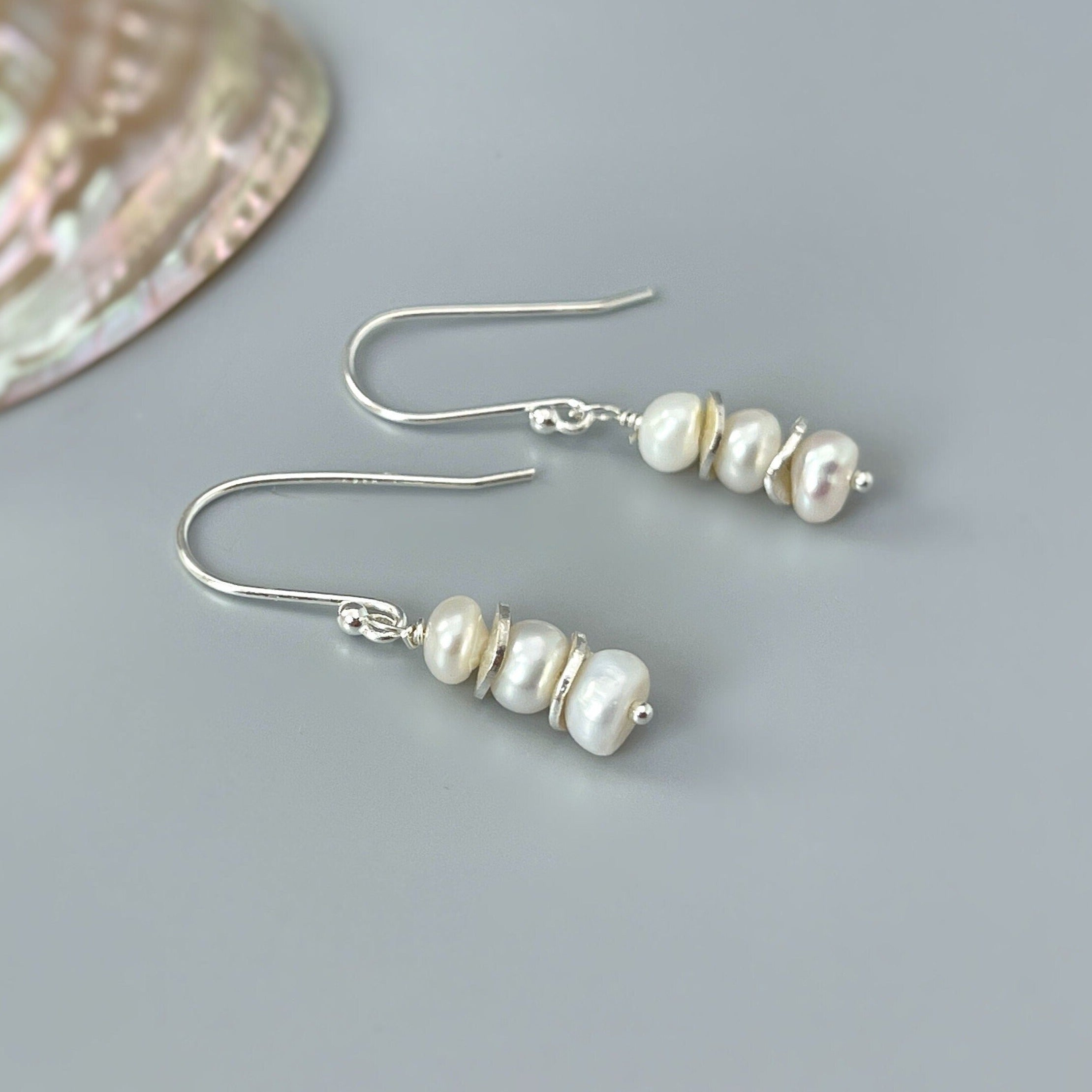 Dainty Pearl drop earrings, Sterling Silver Boho freshwater pearl dangle earrings