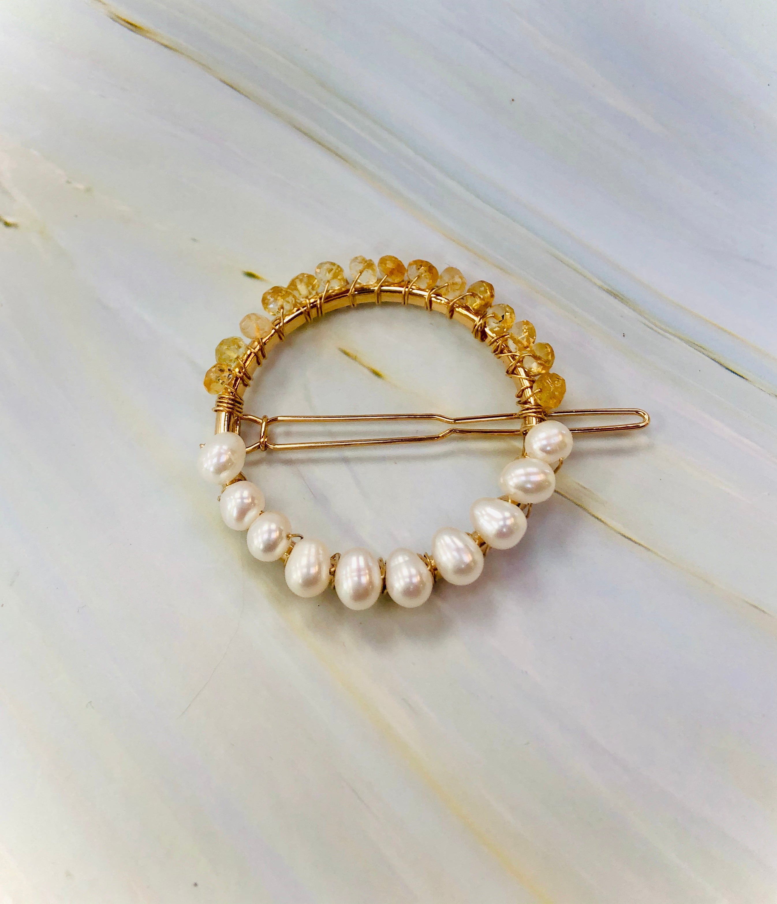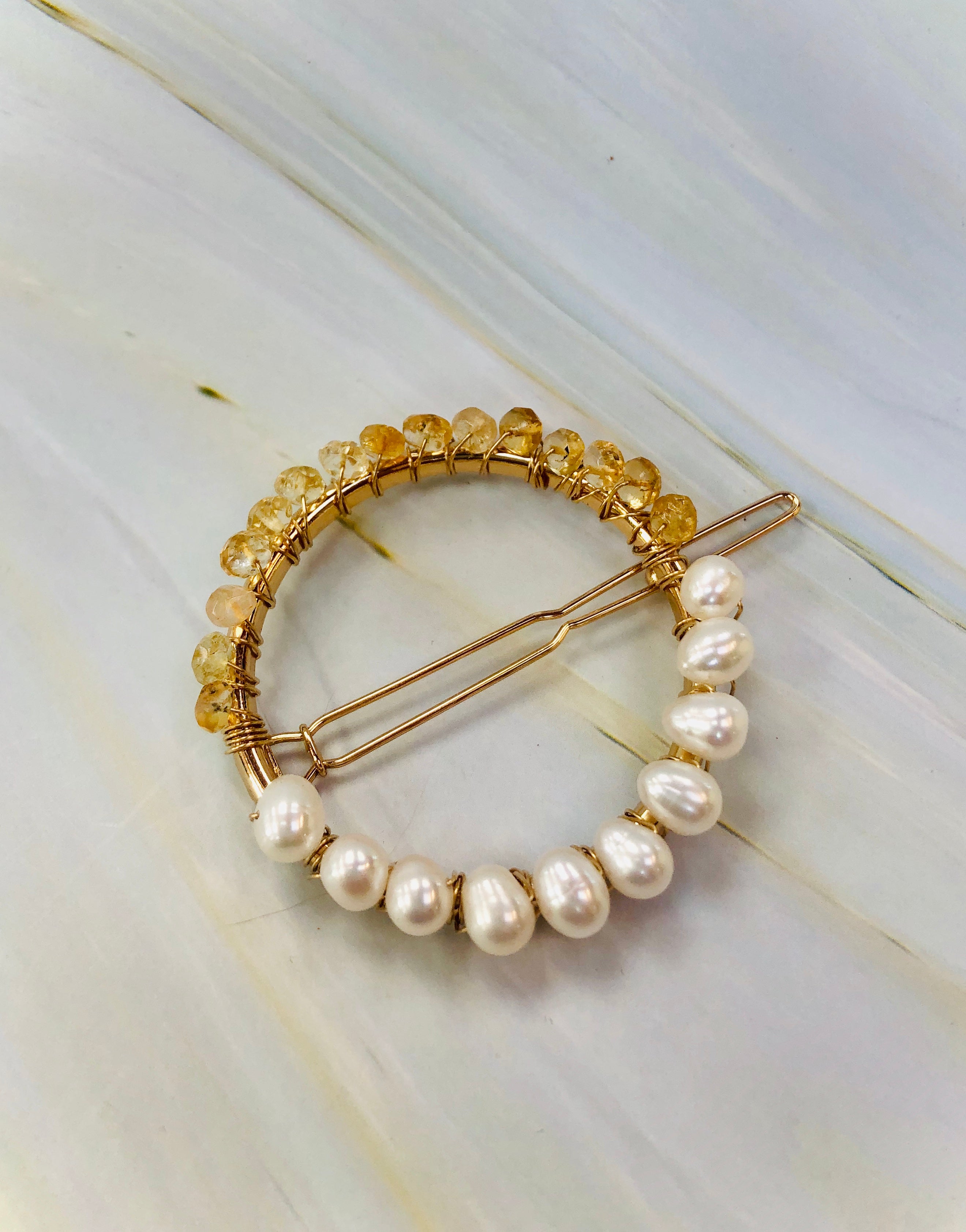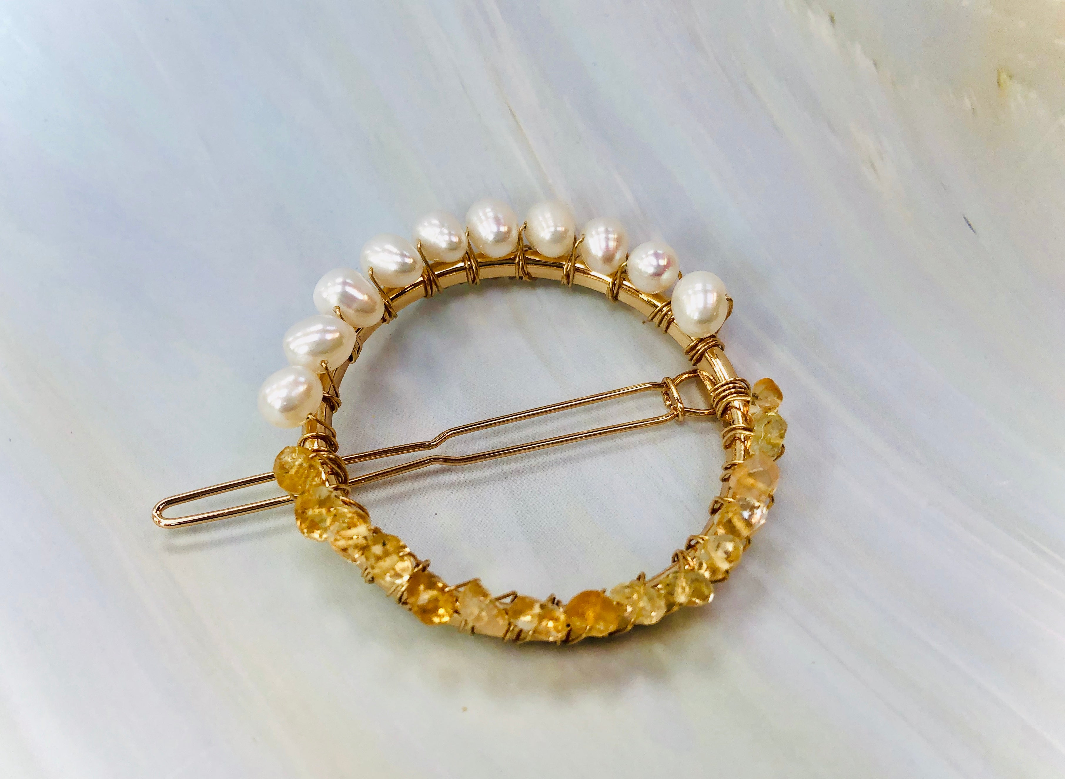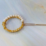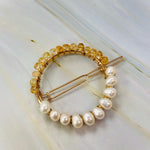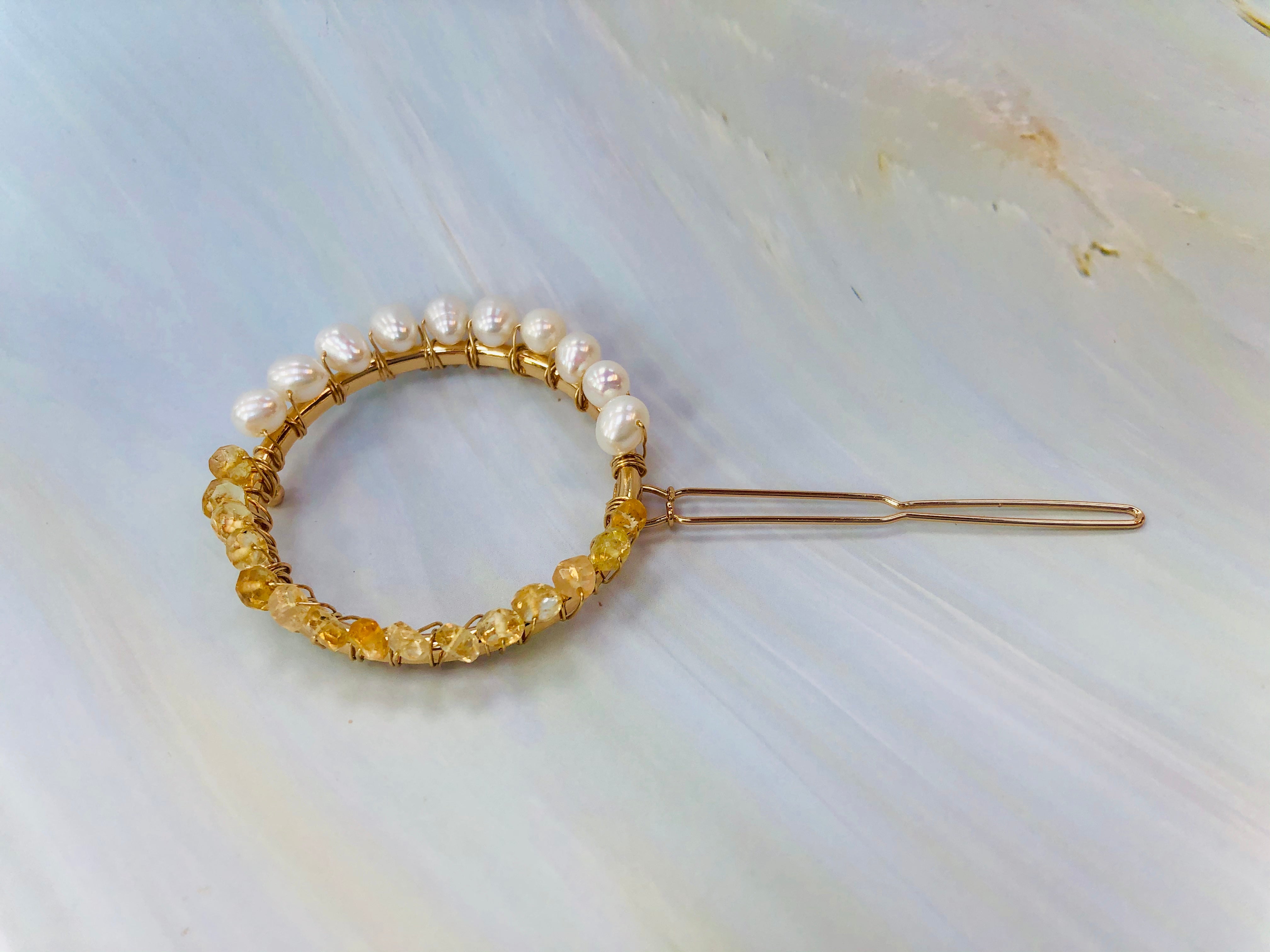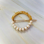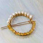 Gemstone and Pearl Hair Clip, 14k Gold Citrine and Pearl barrette, Gold Luxury Barrette, Gemstone Hair clip