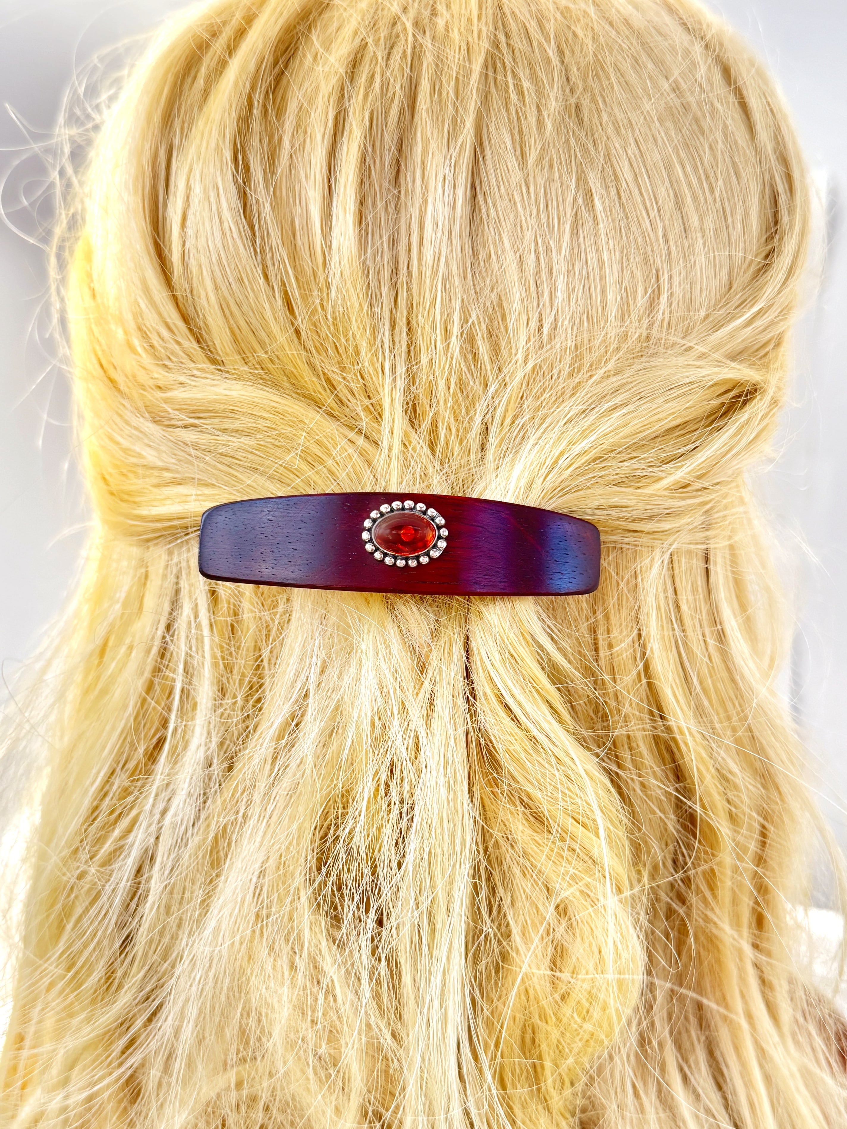 Genuine Baltic Amber and Sterling Silver Gemstone Barrette Borneo rosewood Medium