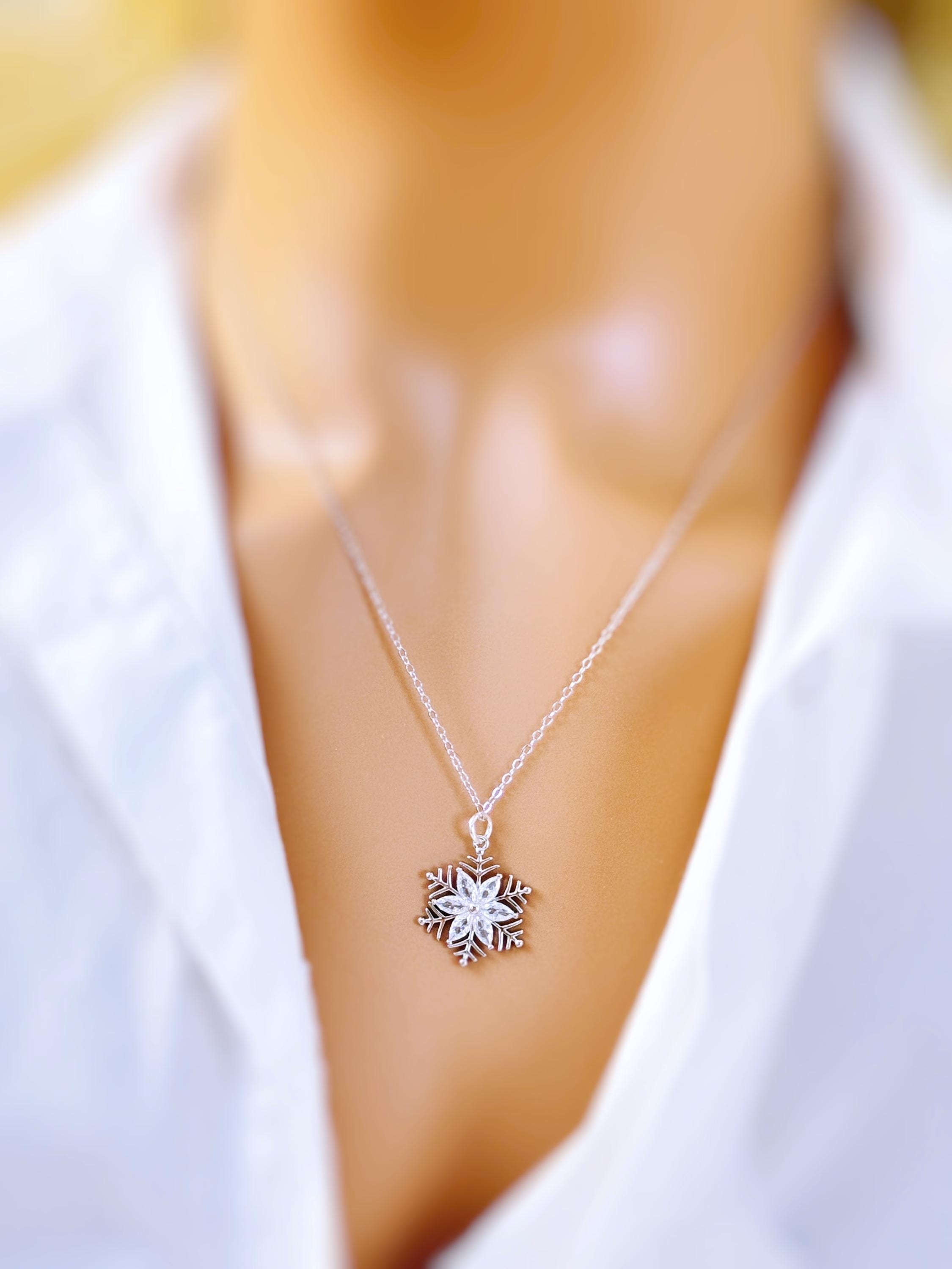 Snowflakes symbolize purity, transformation, individuality, and the fleeting beauty of life. Their intricate and one-of-a-kind patterns remind us that no two moments — or people — are ever the same, making this necklace a meaningful gift for someone special.